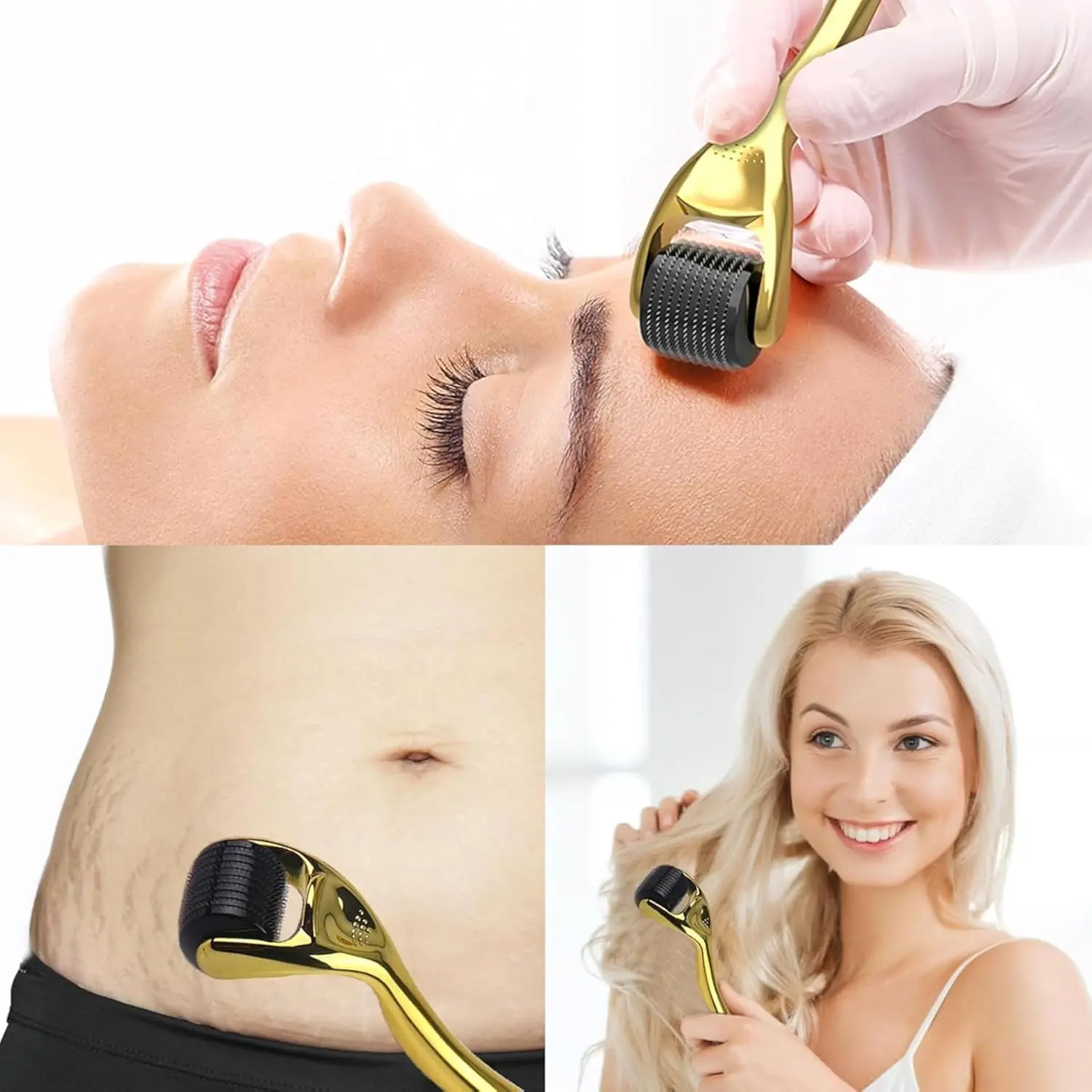 Unlock your hair’s full potential with the WHITE GAINS Derma Roller for Hair Growth! This innovative tool is designed to stimulate hair follicles and boost scalp circulation, promoting thicker, healthier hair. Featuring 540 premium 0.5mm titanium needles, our derma roller creates micro-channels in the skin, triggering the body’s natural healing response. This process increases blood flow and nutrient delivery to the scalp, revitalizing dormant hair follicles and encouraging new growth. The ergonomic and lightweight design ensures a comfortable and precise grip, allowing you to easily target specific areas of concern on your scalp and face. But the benefits don’t stop there! Our derma roller also improves skin health by enhancing the absorption of serums and oils, ensuring your hair follicles receive the vital nutrients they need. Crafted with high-quality, rust-resistant titanium needles, the WHITE GAINS Derma Roller is built to last, providing professional-grade results in the comfort of your own home. After each use, simply clean the derma roller with soap, warm water, and an alcohol solution to maintain optimal hygiene and prevent bacterial buildup. Experience the difference and achieve the hair you’ve always dreamed of with WHITE GAINS.