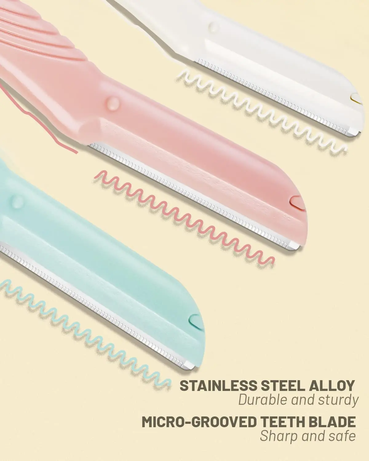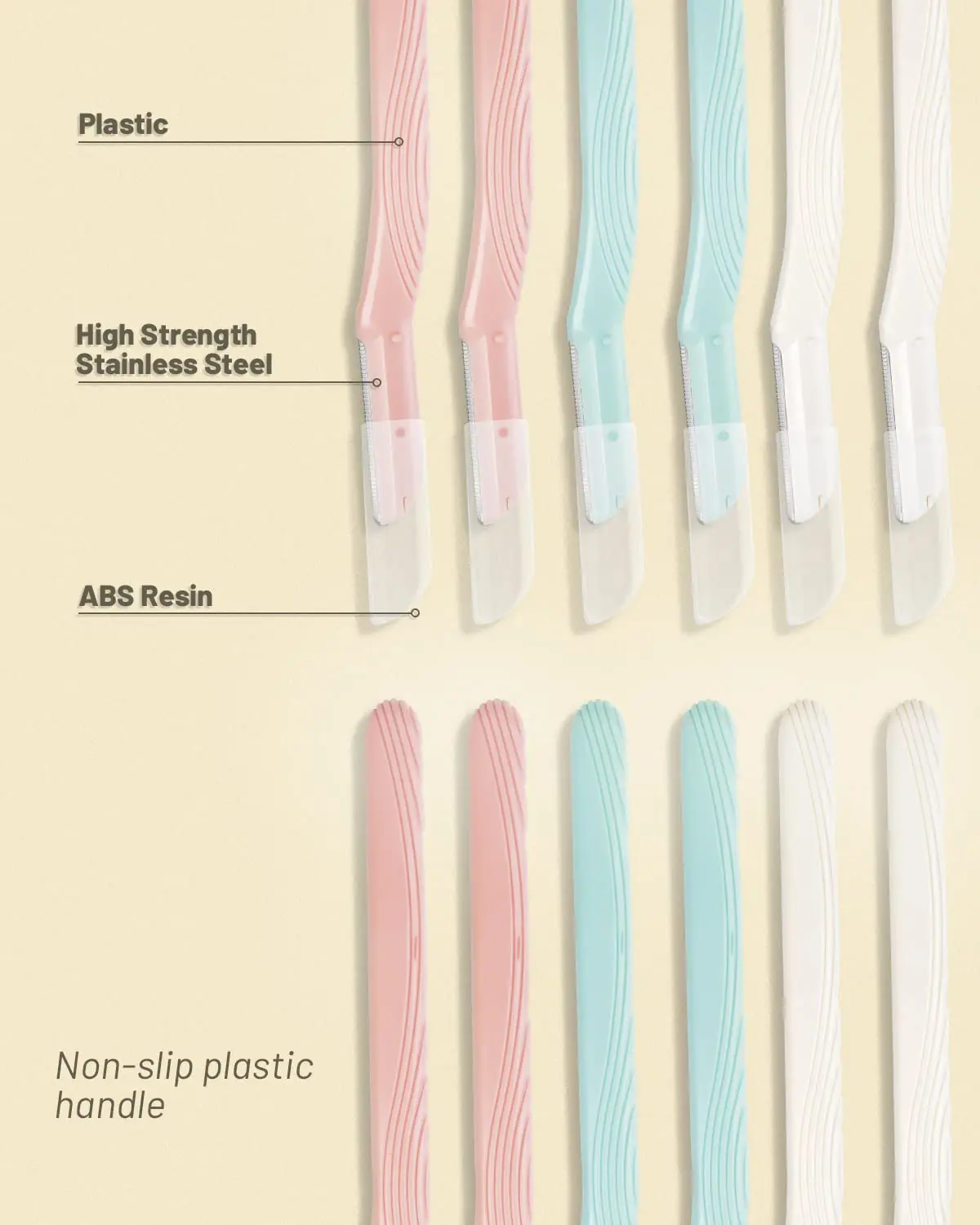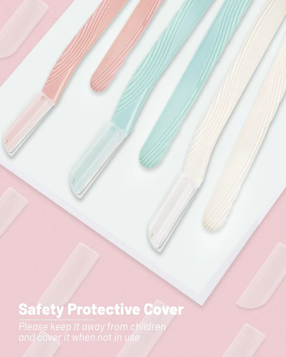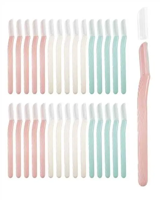 Achieve flawlessly smooth skin with our Dermaplane Razor for Women. This package includes 30 precision facial hair removers designed to gently exfoliate and remove unwanted peach fuzz, revealing a radiant complexion. Crafted with high-quality plastic and a sharp stainless-steel microblade, our dermaplane razors offer safe and effective hair removal in the comfort of your own home. The ergonomic, non-slip handle ensures a secure grip and precise control, while the protective cover safeguards the blade when not in use. Each razor measures 5.8×0.4 inches, making them perfect for travel and on-the-go touch-ups. This set includes razors in three different colors, suitable for use on the entire body. These facial razors are more than just hair removal tools; they also effectively remove dead skin cells, promoting cell turnover and leaving your skin feeling soft, smooth, and rejuvenated. Remember to use gentle, downward strokes and avoid applying excessive pressure during use. Keep out of reach of children.