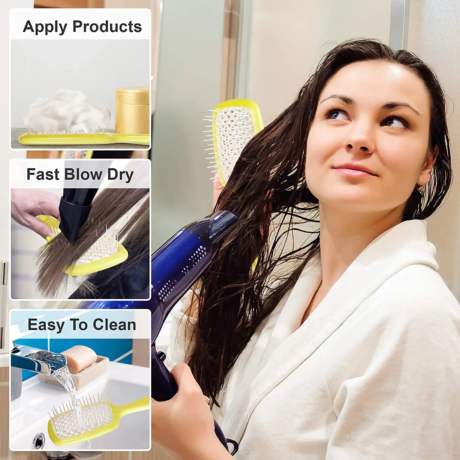 This hairbrush is not just for detangling; it’s also the perfect tool for applying hair care products to dry hair or working shampoo through wet hair in the shower. Its design protects your nails and makes it easy to carry and distribute your favorite hair products. Cleaning is a breeze – simply remove any hair from the comb’s teeth by hand and rinse under the tap.