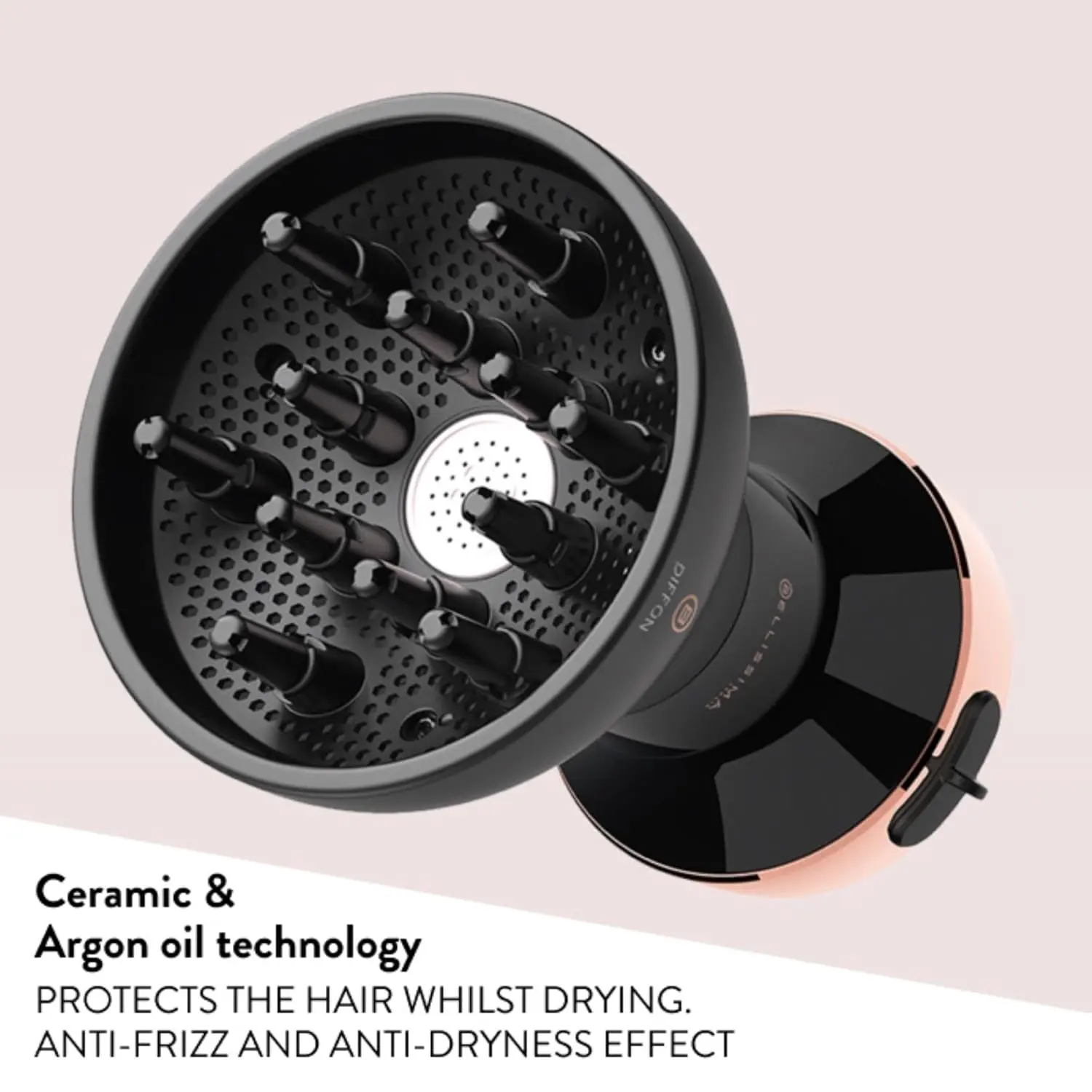 The 2-in-1 Diffuser & Hairdryer delivers salon-quality, frizz-free curls at home. Featuring Curl Flow, Ceramic & Argan Oil, and Ionic technologies. Perfect for all curl types for defined, healthier hair.