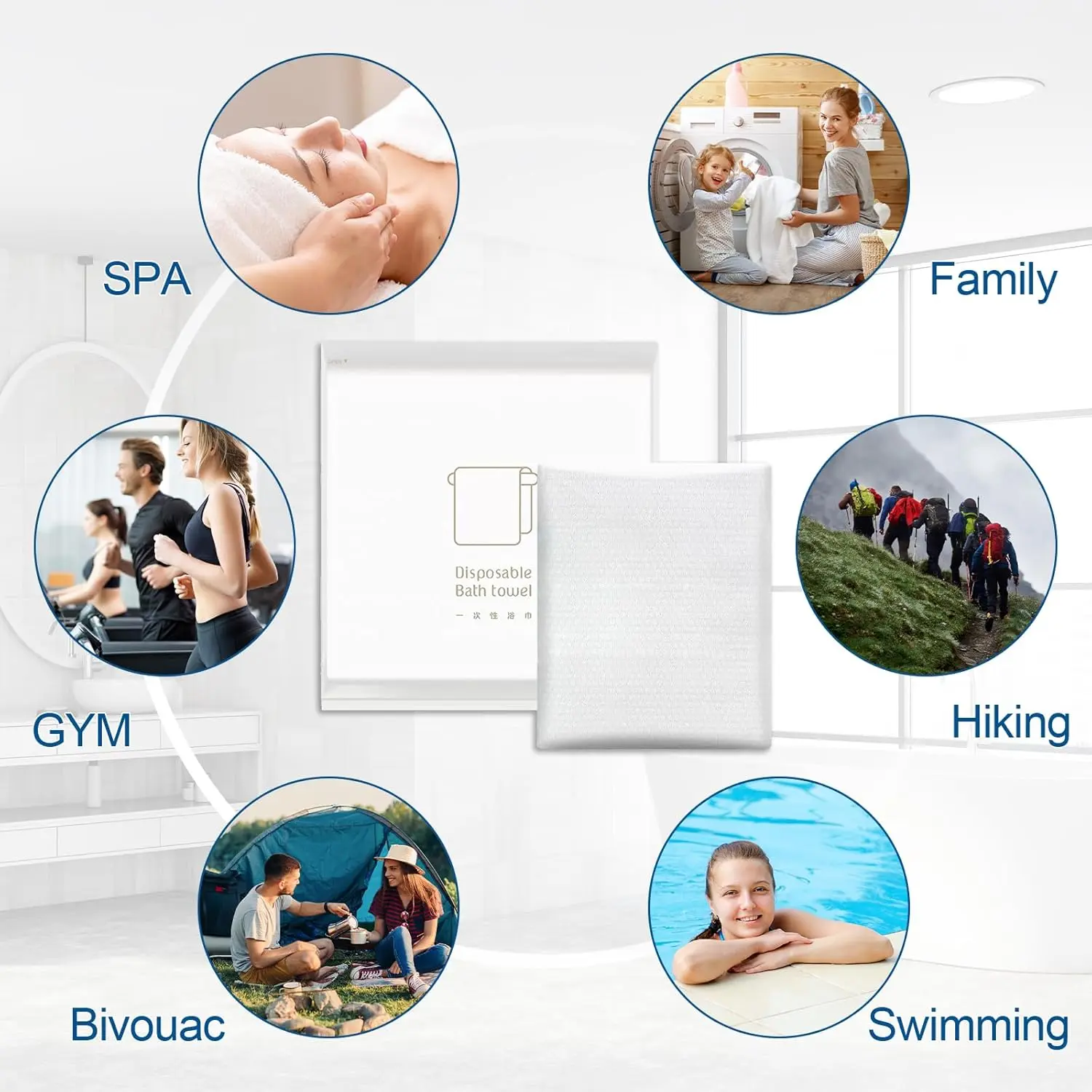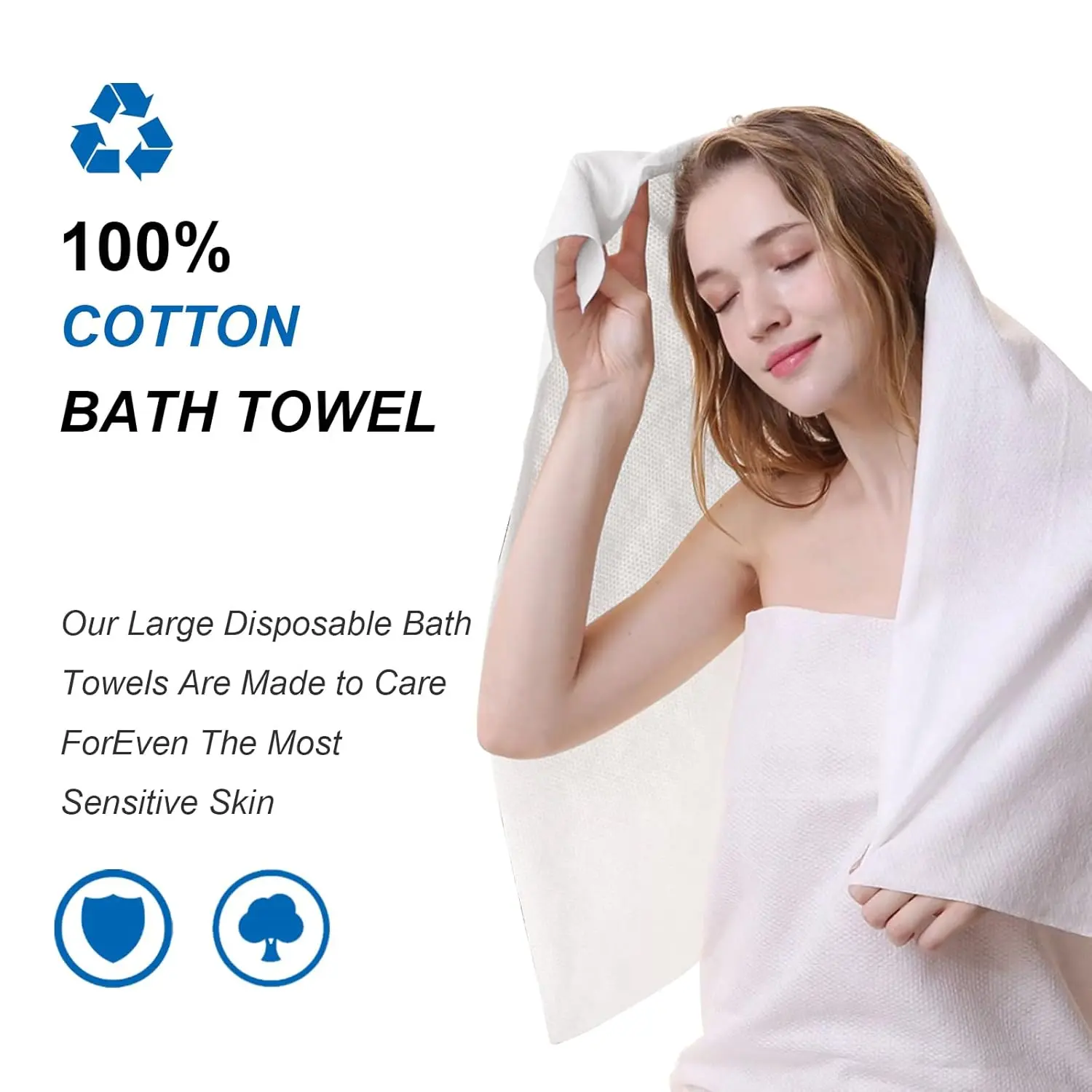 Experience the ultimate in hygiene and convenience with our Disposable Bath Towels. This 10-pack of large bath towels offers a clean and comfortable solution for travel, hotel stays, camping, spa visits, or even everyday use at home. Each towel is individually packaged, ensuring maximum cleanliness and preventing cross-contamination. Made from a thick, absorbent material, these towels are incredibly soft to the touch, providing a gentle and luxurious feel against your skin. Measuring 27.5×55 inches (70×140 cm), they offer ample coverage for a complete drying experience.