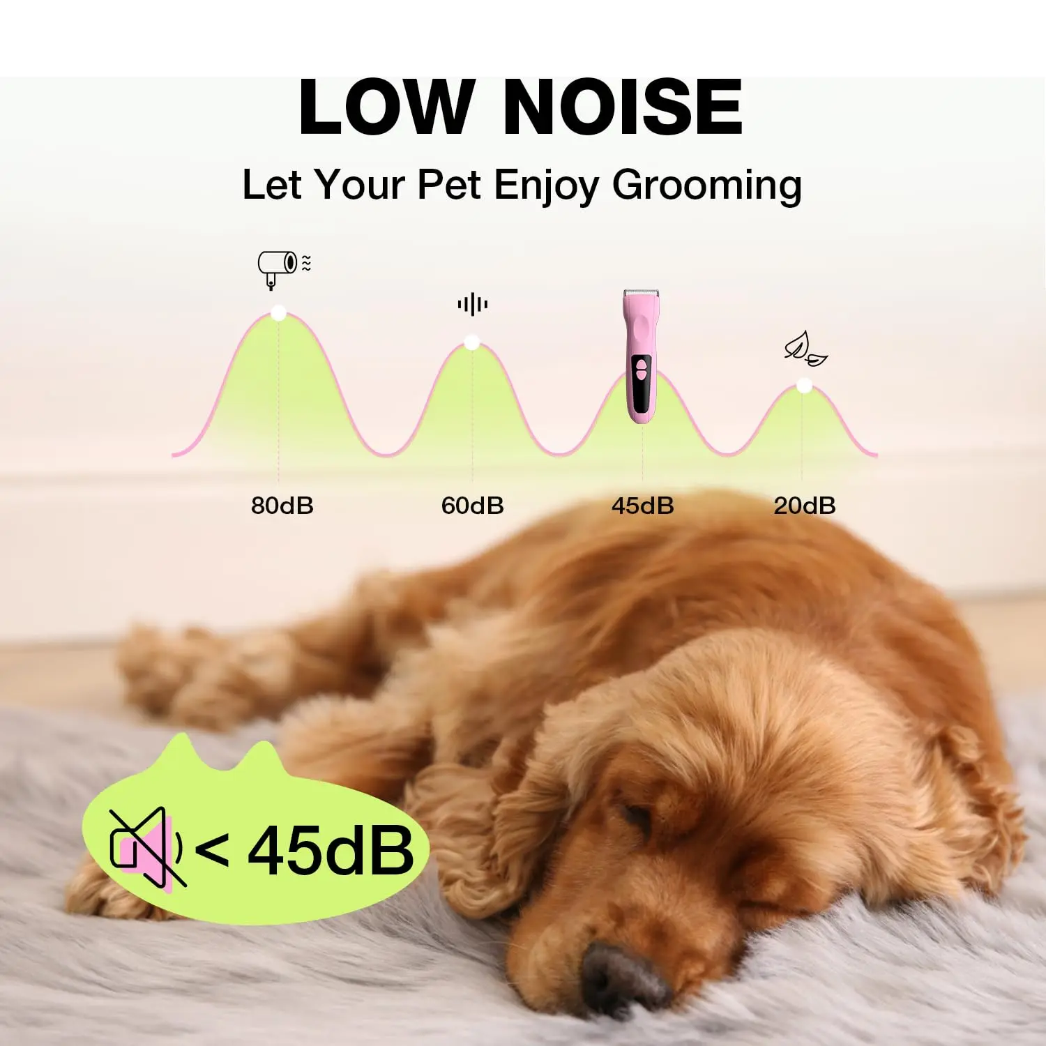 Dog Clippers Low Noise Cordless Rechargeable Pink