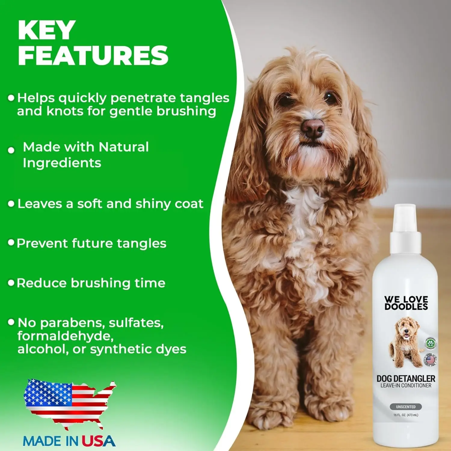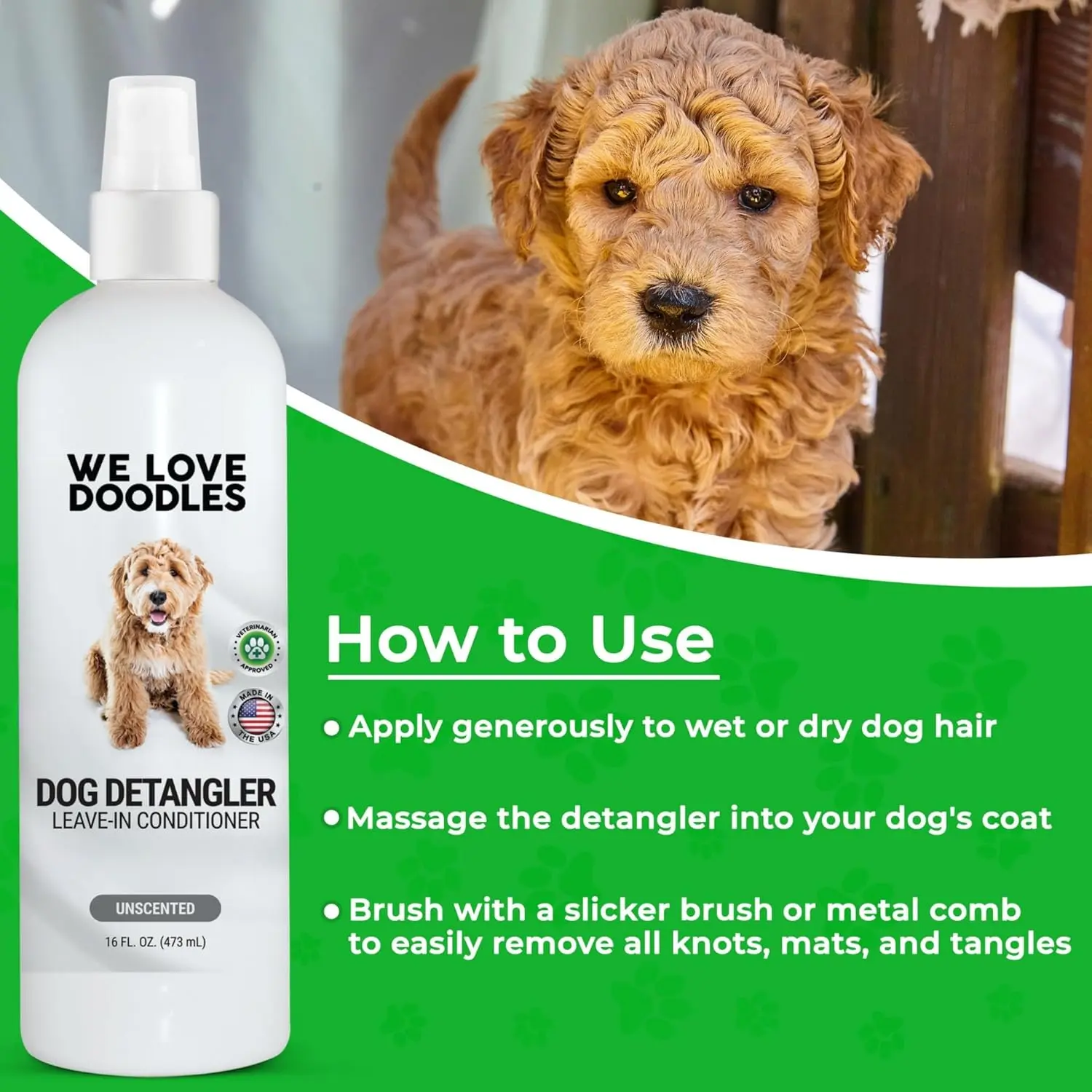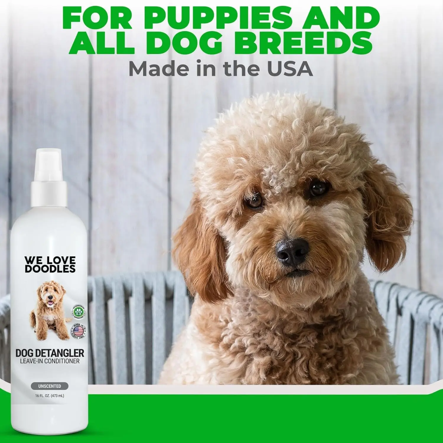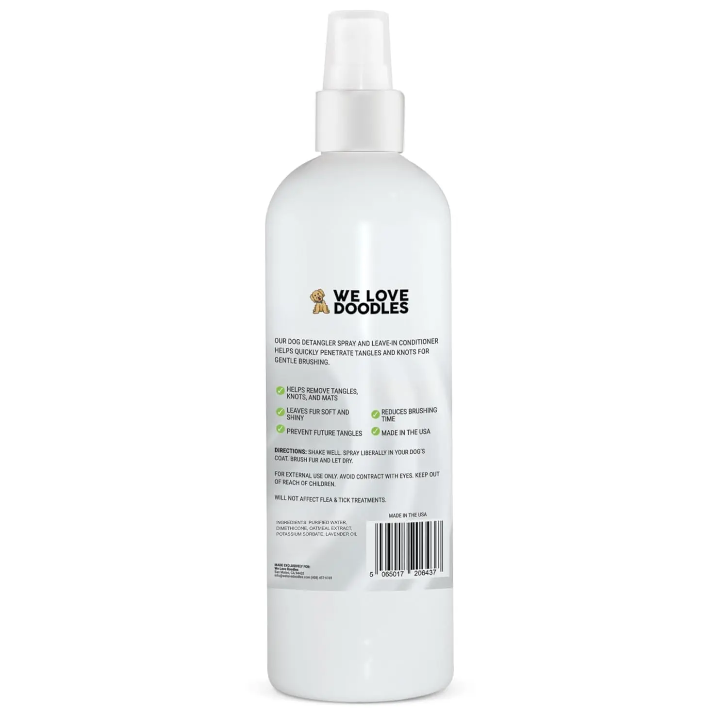 Is your furry friend’s coat a tangled mess? Our Dog Detangler Spray is the perfect solution for effortlessly removing knots and preventing future mats. This leave-in conditioner is specially formulated to gently detangle even the most stubborn knots, leaving your dog with a smooth, healthy, and tangle-free coat. Made in the USA with a safe and gentle formula, this detangler is suitable for all breeds and ages. Say goodbye to painful brushing sessions and hello to a happy, comfortable pup! The fresh lavender scent will leave your dog smelling wonderful and feeling refreshed. Simply spray, brush, and enjoy the difference! We prioritize your dog’s well-being and stand behind the quality of our product. Experience the joy of easy grooming with our Dog Detangler Spray. It makes grooming a breeze for both you and your dog. The lavender scent is not only pleasant but also helps to calm and relax your dog during the grooming process. With regular use, you’ll notice a significant reduction in tangles and mats, making grooming a much more enjoyable experience for everyone involved. Don’t struggle with knots any longer; invest in our detangler spray and see the difference. It’s a must-have for any dog owner who wants to keep their pet’s coat looking its best. The gentle formula ensures that it won’t irritate your dog’s skin, making it perfect for daily use. Our product is designed to be user-friendly, so you can easily incorporate it into your dog’s grooming routine. The spray application makes it quick and easy to apply, and the leave-in formula means you don’t have to rinse it out. This saves you time and effort while still achieving excellent results.