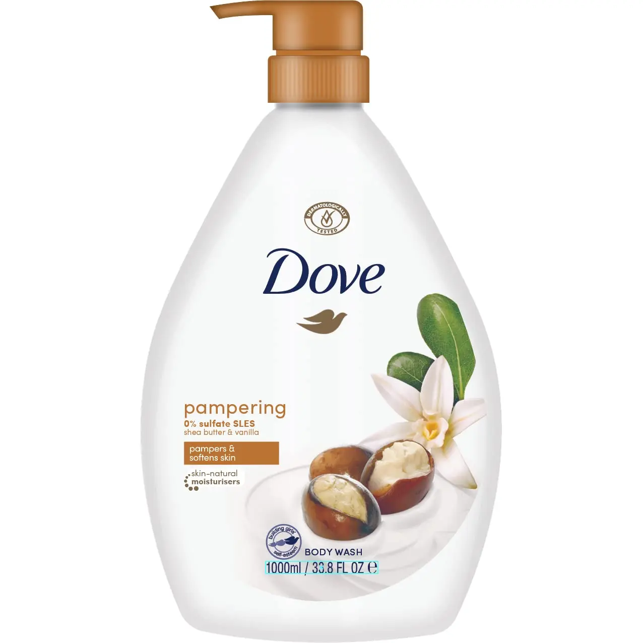 Indulge in the luxurious Dove Shea Butter Body Wash and transform your daily shower into a nourishing and pampering experience. This moisturizing body wash is carefully crafted with your skin’s health in mind. Infused with NutriumMoisture, a unique blend of plant-based moisturizers that mimic those found in lotions, this body wash deeply hydrates your skin, leaving it feeling soft, smooth, and visibly nourished after just one use. The warm and comforting scent of shea butter and vanilla creates a relaxing and indulgent atmosphere, turning your shower into a moment of self-care. Our gentle formula is made with 100% gentle cleansers, ensuring a delicate and effective cleanse without stripping your skin of its natural oils. It is sulfate-free, paraben-free, and pH-balanced, making it suitable for all skin types, even sensitive skin. Moreover, this body wash respects your skin’s microbiome, helping to maintain its natural balance. Dove is committed to ethical and sustainable practices. This body wash is PETA-approved cruelty-free, meaning it is not tested on animals. It also comes in a 100% recycled plastic bottle, reducing our environmental impact. Experience the difference of a truly nourishing and consciously made body wash with Dove Shea Butter Body Wash. Enjoy long-lasting softness and a healthy glow with every shower.