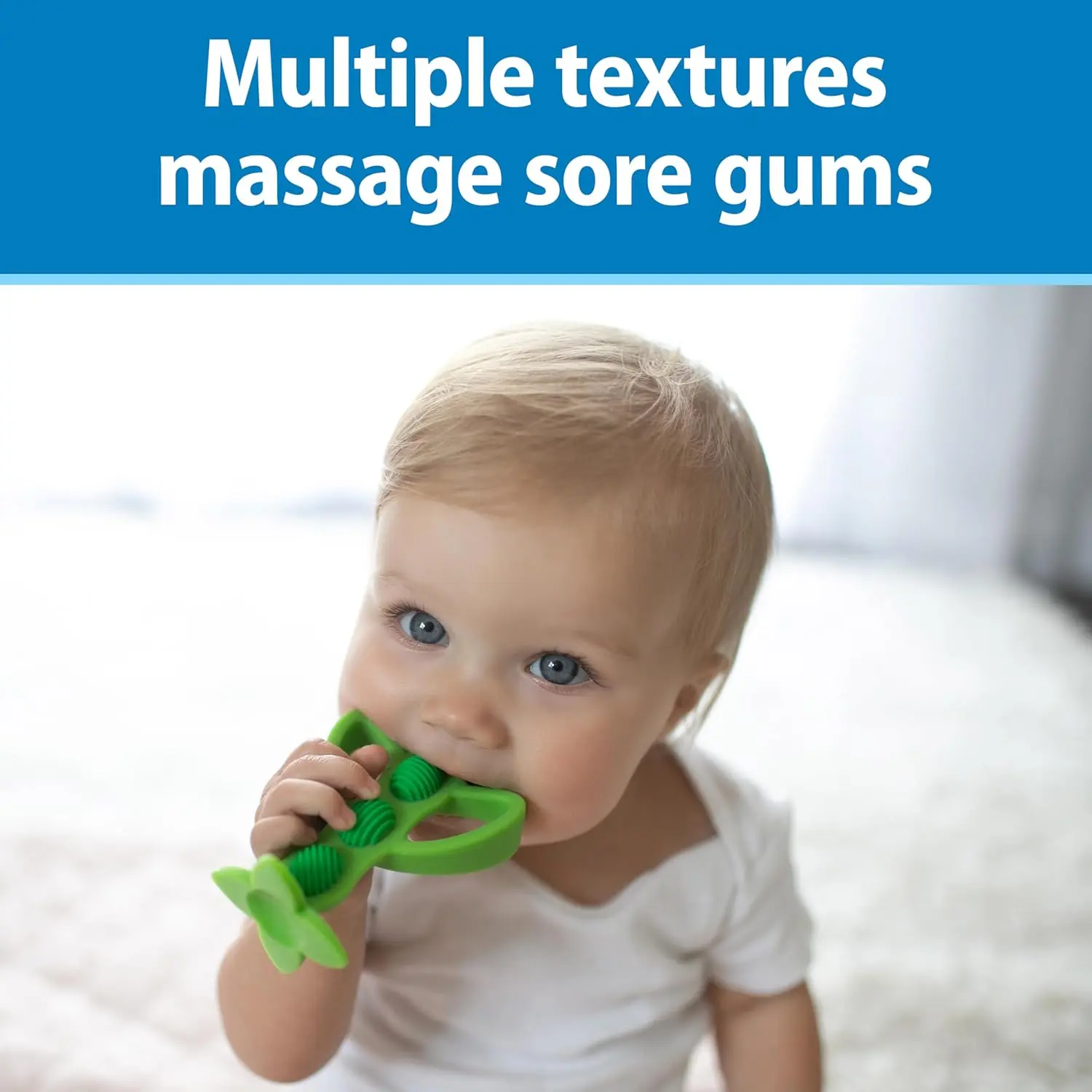 • Soothes Sore Gums: Textures massage and relieve teething discomfort.