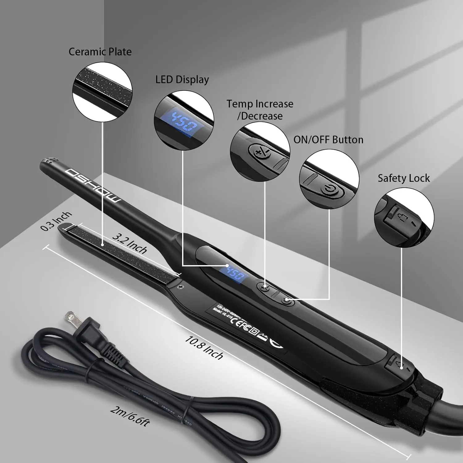 Achieve sleek, salon-worthy hair with the DSHOW Pencil Flat Iron for Short Hair. Designed with ultra-thin 0.3-inch plates, this small flat iron is perfect for styling short, thin, and medium hair. Whether you want to straighten or create curls, this versatile tool allows you to achieve perfectly styled hair quickly and easily. The ceramic plates with PTC heating technology heat up in just 15 seconds, providing consistent and stable heat for fast and long-lasting results. The 3D floating plates ensure even heat distribution and minimize frizz and damage, leaving your hair sleek and smooth. With 6 adjustable temperature settings ranging from 140-450℉, you can customize the heat to suit your hair type and desired style. The digital LED display shows the real-time temperature, ensuring precise and controlled styling. The anti-mistouch mode prevents accidental temperature changes during use. This compact and lightweight flat iron is also perfect for travel. It comes with a pouch for easy storage and a 6.6ft swivel cord for flexible styling. The 60-minute auto shut-off function ensures safety. Dual voltage compatibility (100V-240V) makes it ideal for worldwide use. Experience professional-quality styling at home or on the go with the DSHOW Pencil Flat Iron for Short Hair.