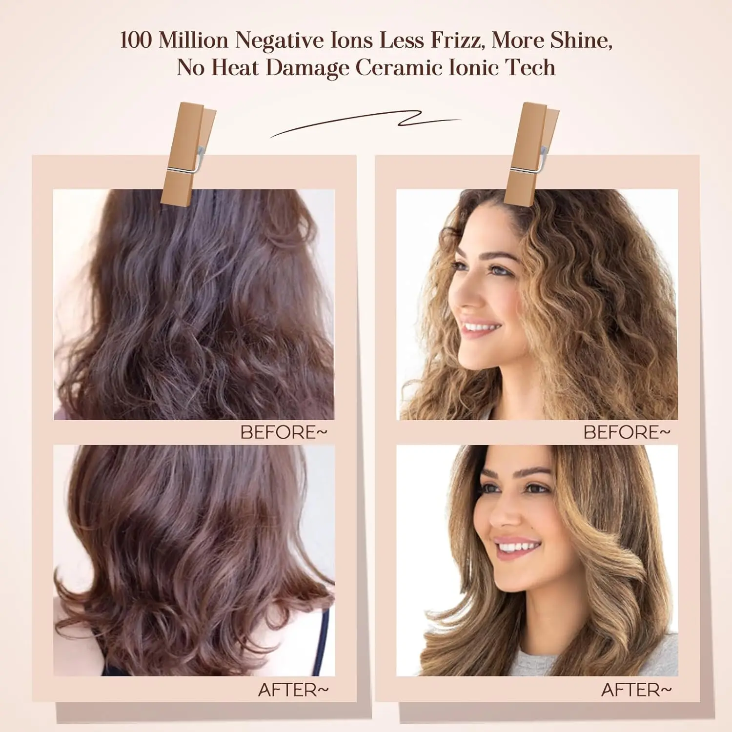 This 4-in-1 styling tool is suitable for all hair types, whether long, short, or curly. The ergonomic handle offers maximum comfort and ease of use during styling. The dryer features a powerful 600W DC motor and a 360° swivel cord (5.9ft) for flexible styling. Choose from 2-speed settings and 3 temperature levels to customize your styling experience. Options include a Cool setting for high-speed cooling, a Low setting for warm 60°C styling at low speed, and a High setting for high-temperature styling at high speed. Safety is paramount, and this blow-dry brush includes an ALCI plug, meeting U.S. safety requirements and ETL Certification.
