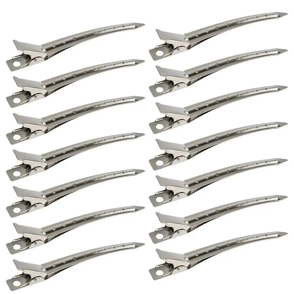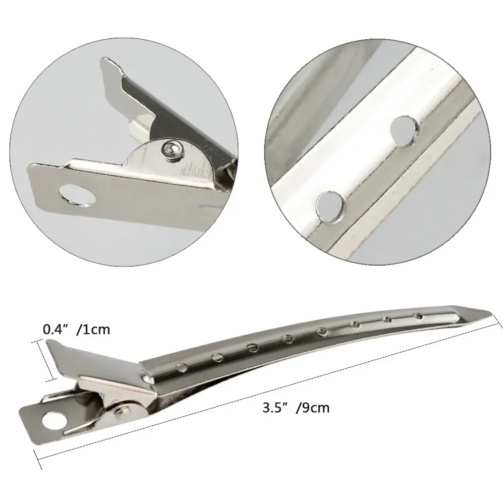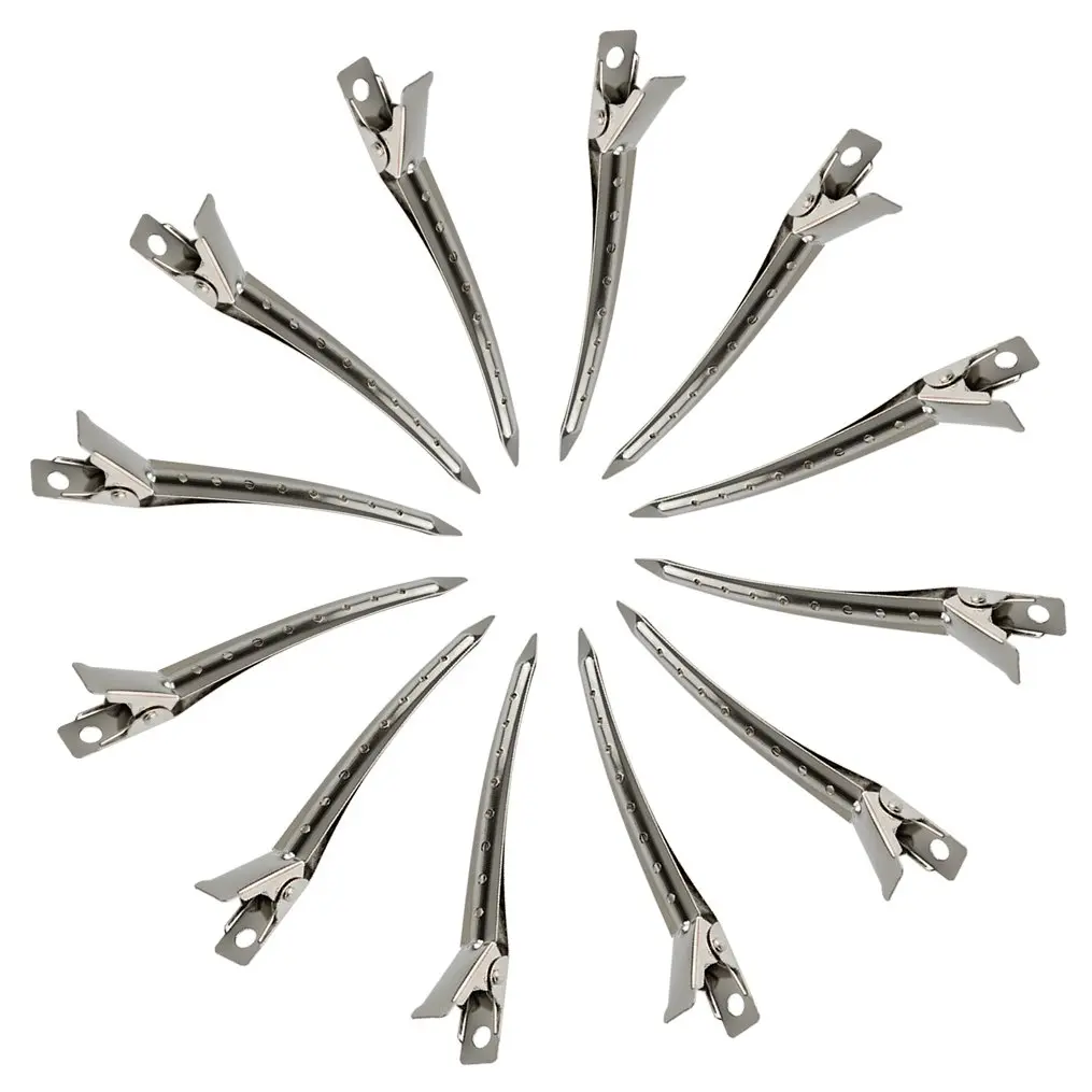 Achieve salon-quality hairstyles at home with our premium Duck Bill Clips! This 24-pack of durable metal alligator hair clips is perfect for sectioning, styling, and creating beautiful curls. Crafted from high-quality nickel-plated metal, these clips are built to last. They resist rust, offer a smooth surface, and provide a secure hold without damaging your hair. Each clip measures 3.5 inches (8.9cm) in length, making them ideal for managing all hair types and lengths. Whether you’re cutting, coloring, blow-drying, or simply styling your hair, these clips will be your go-to tool. The slim yet sturdy design of the bottom metal clip allows for precise sectioning, ensuring even application and flawless results. Create stunning pin curls by securing your hair with these clips while it dries or sets. Then, simply remove the clips and comb through your curls for a glamorous, red-carpet-ready look. But the versatility doesn’t stop there! These silver metal single prong hair clips are also perfect for DIY projects. Add your favorite hair accessories, beads, or embellishments to create unique and personalized hair pins for everyday wear or special occasions. These clips are suitable for a wide range of applications, from professional salon use to home styling, garden maintenance, and household cleaning. They’re a must-have for women, girls, and hairdressers alike. Upgrade your hair styling routine with these reliable and versatile Duck Bill Clips! They offer exceptional quality, durability, and performance, making them an essential addition to your beauty arsenal. Say goodbye to frustrating slips and uneven sections and hello to effortlessly beautiful hair! The strong grip ensures that your hair stays in place, allowing you to focus on creating the perfect style. These clips are also easy to clean and maintain, making them a long-lasting investment in your hair care routine. Experience the difference that quality makes with our Duck Bill Clips. Order your 24-pack today and unlock endless styling possibilities!