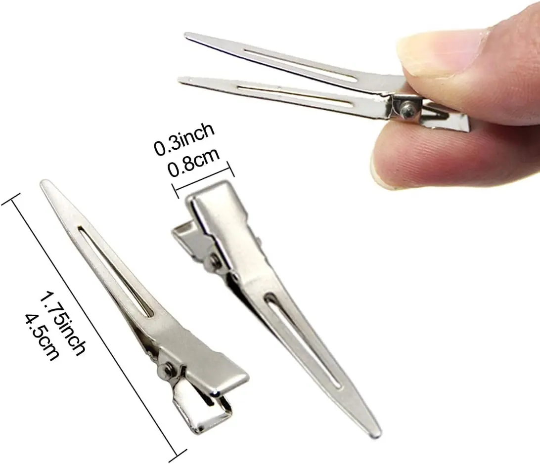 Create stunning hairstyles with our premium Duck Bill Clips! This set of 50 durable metal hair clips is perfect for professional salon use or at-home styling. Made from high-quality plating stainless steel, these clips are sturdy, rust-resistant, and feature a smooth surface for comfortable use. The 3.54-inch length provides ample holding power for all hair types and thicknesses. Easily section hair for cutting, styling, blow-drying, or creating glamorous pin curls. The unique convex design ensures a secure grip without slipping, while the thin yet strong metal side is ideal for precise sectioning near the scalp. Add your favorite hair accessories to customize these silver metal single prong hair clips and create unique, beautiful hair pins for daily wear. Whether you’re a seasoned stylist or a DIY enthusiast, these duck bill clips are an essential tool for achieving flawless hairstyles. The ease of use allows you to create amazing styles without damaging hair. Spend some time drying or styling your hair using these great clips, and then remove them to enjoy the beautiful results. Enjoy professional quality and stunning results with these must have clips.