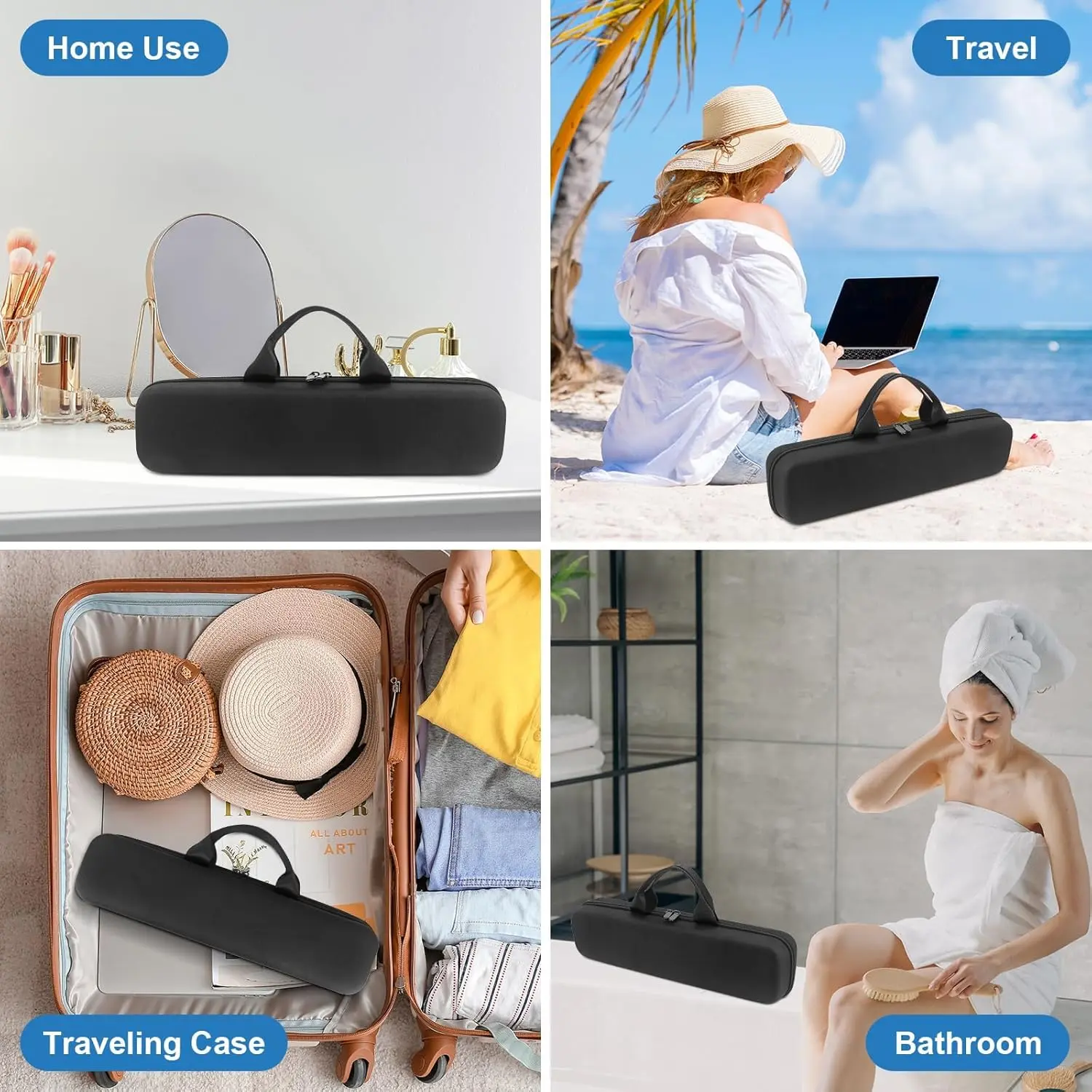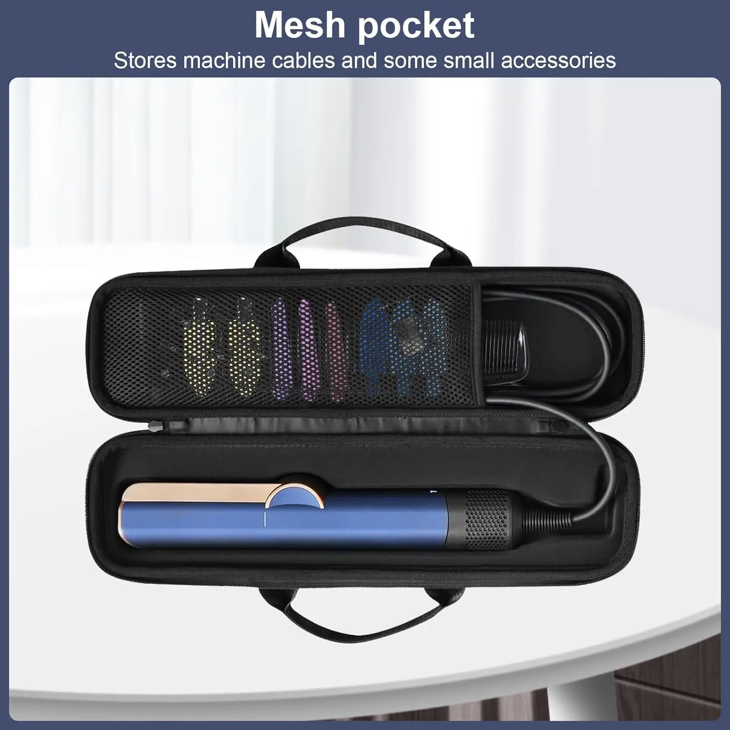 Protect your Dyson Airstrait Straightener with this hard-shell travel case. Designed for a perfect fit, the interior grooves cradle your Airstrait, preventing shaking and scratches during transport. A top mesh pocket neatly organizes cables and accessories like hair clips. Crafted from waterproof Oxford cloth and shockproof EVA materials, this case offers robust protection. Featuring a durable handle and smooth zipper, it’s ideal for family travel, business trips, and secure suitcase storage. Its size makes it a great companion for various occassions such as traveling, business trips, cosmetic bag, holidays, overnight stays, and weekenders. The product dimensions are 17.7*4.3*3.6in. Keep your valuable hair styling tool safe and organized wherever you go. Note: Hair Dryer Hair Straightener and accessories are NOT Included. This travel case is not only practical but also makes a thoughtful gift for Christmas, birthdays, and other important holidays. The hard exterior offers superior protection compared to soft cases, ensuring your Dyson Airstrait arrives safely at your destination.