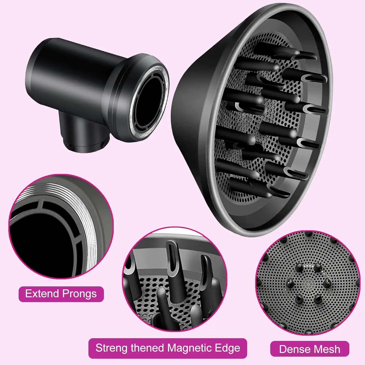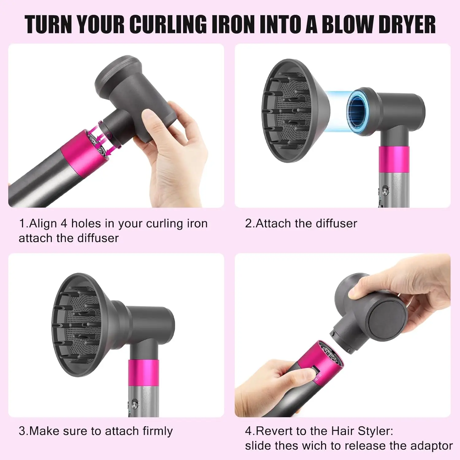 Transform your Dyson Airwrap Styler into a versatile hair-drying and diffusing tool with this convenient adapter set! This innovative accessory allows you to effortlessly switch between the Airwrap’s styling capabilities and a gentle, natural-drying experience. Say goodbye to frizzy, undefined curls and hello to voluminous, shiny, and naturally textured hair. The diffuser attachment features long prongs designed to reach deep into your hair, evenly dispersing air to mimic the effects of natural drying. This process helps to minimize frizz, enhance curl definition, and create a soft, bouncy look. Whether you have curly, wavy, or even straight hair, this diffuser adapter can help you achieve your desired style. For curly hair, it enhances natural curl patterns and reduces frizz. For straight hair, it adds volume and softness, creating a more textured and dynamic look. Installation is quick and easy, requiring only two simple steps. First, attach the adapter to your Airwrap styler. Then, connect the diffuser attachment to the adapter. The lightweight and durable construction of both the adapter and diffuser ensures long-lasting performance and easy portability. No need to invest in a separate diffuser hairdryer – this adapter set offers a cost-effective and space-saving solution. This diffuser adapter set is also a perfect gift for any occasion, including birthdays, Mother’s Day, anniversaries, Valentine’s Day, and Christmas. Give the gift of beautiful, healthy-looking hair! Enjoy the convenience of converting your existing Dyson Airwrap into a powerful diffusing tool. Experience enhanced curl definition, reduced frizz, and increased volume, all with a simple and easy-to-use attachment. Invest in this adapter set and unlock the full potential of your Dyson Airwrap Styler.