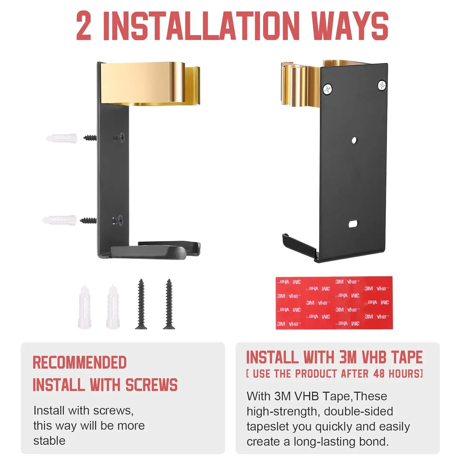• Two installation methods: adhesive tape or screw mounting