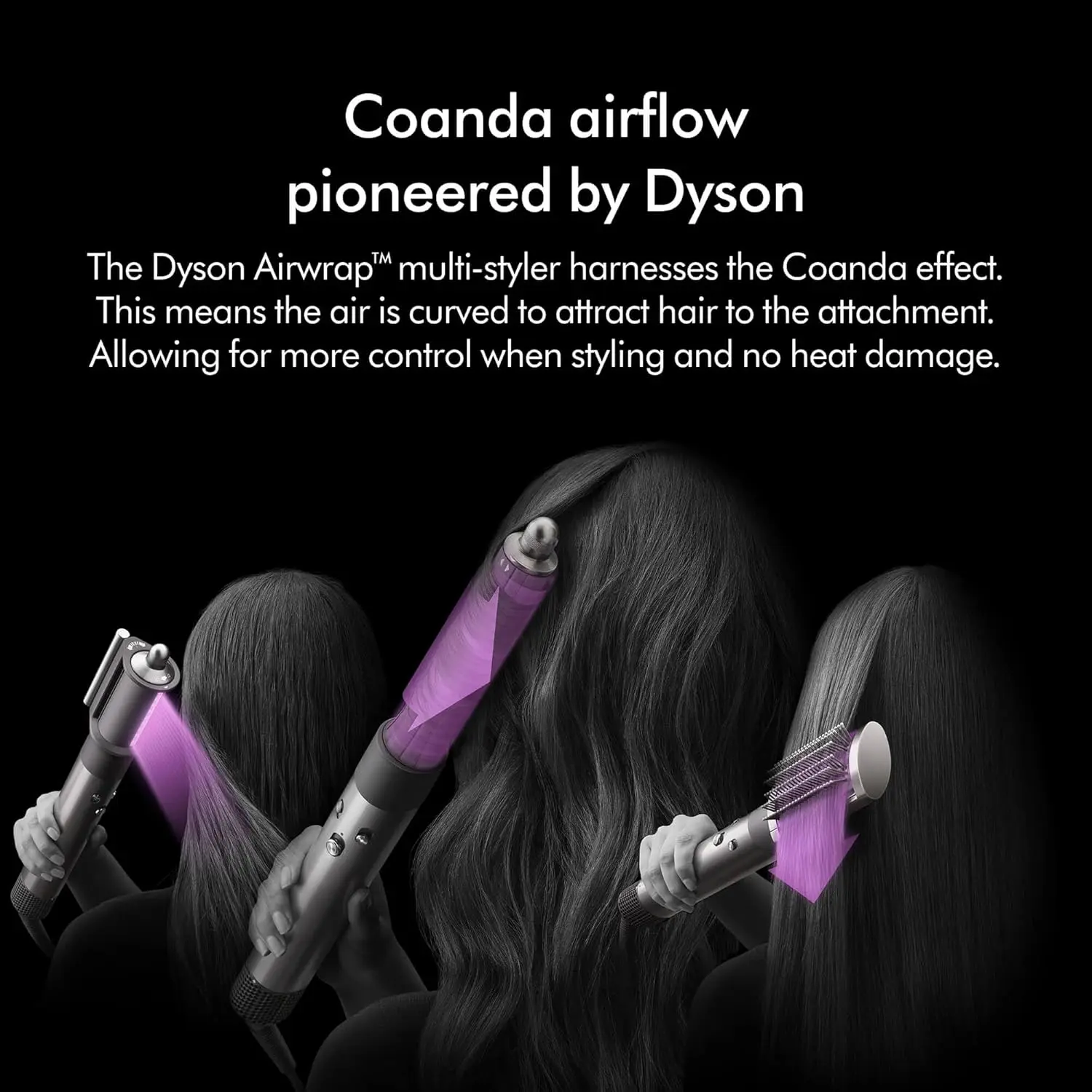 • Coanda effect attracts and wraps hair for effortless styling.