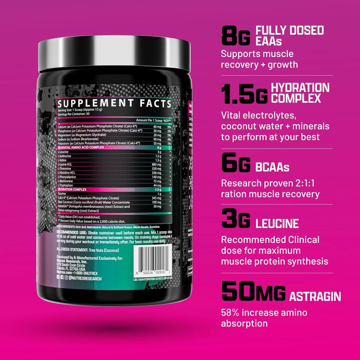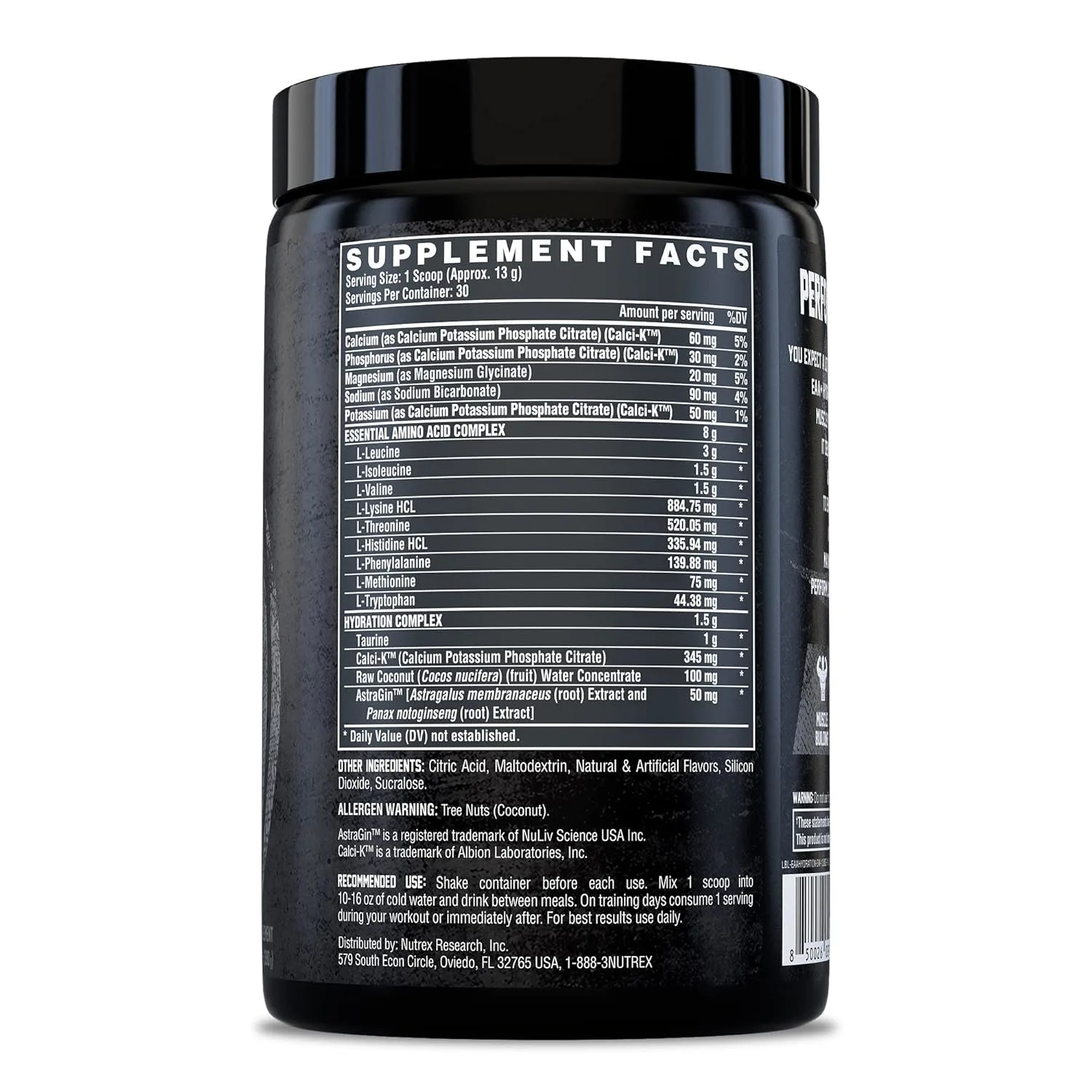 • Hydration Complex: Coconut Water, Taurine, and Albion minerals for refueling and rehydration.