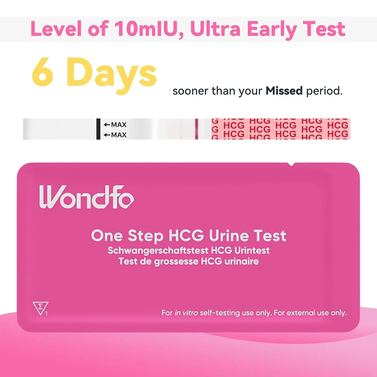 • Ultra Early Detection: Detects hCG at 10 mIU/mL.
