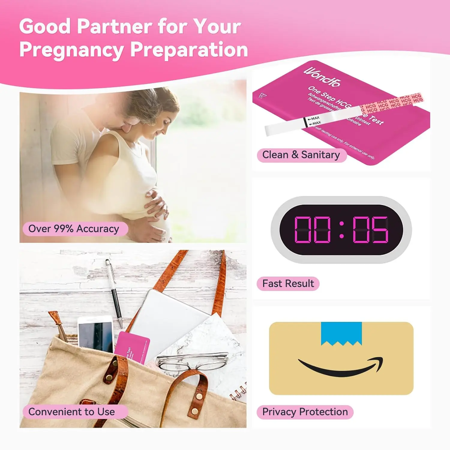 Detect pregnancy sooner with Wondfo Early Pregnancy Test Strips! This 20-pack of highly sensitive tests allows you to discover if you’re pregnant up to 6 days before your missed period. Our tests can detect hCG at a level of 10 mIU/mL, providing ultra-early detection. Get rapid results in just 3-5 minutes after a simple 5-second dip. Remember, early pregnancy lines may be faint, so continue testing for confirmation. A positive result requires multiple confirmations and does not automatically guarantee pregnancy. Follow the instructions carefully to avoid inaccurate results. Note: Packaging may vary. Wondfo pregnancy tests offer over 99% accuracy from the day of your expected period. It is important to note that testing with water or juice is not a valid method and will yield meaningless results. This does not indicate defective test strips. If the pink test strip result is positive (two lines) after several tests, consult your physician. Indent line is not a positive result. If you have questions or are dissatisfied with the results, you are welcome to contact us.