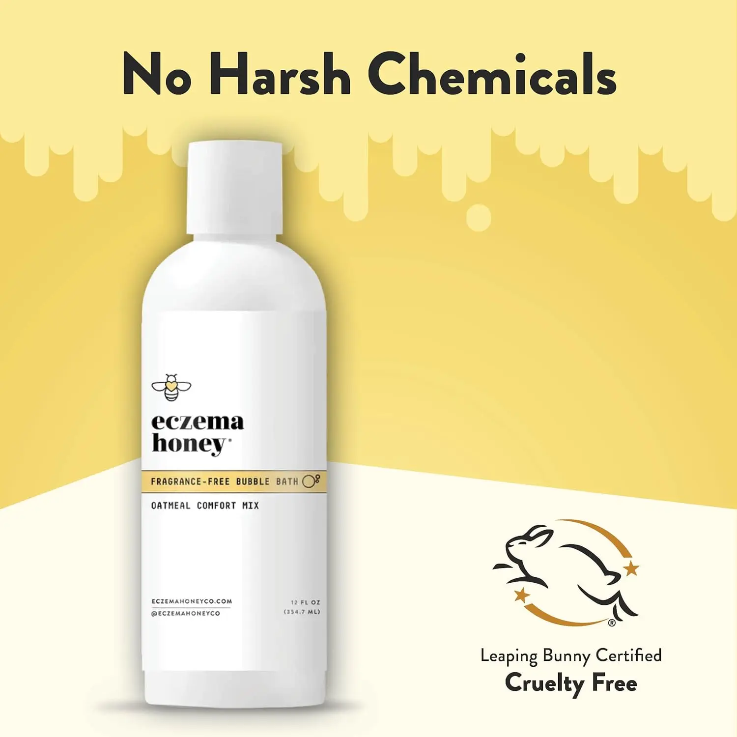 Indulge in a soothing and revitalizing skincare experience with Eczema Honey Oatmeal Bubble Bath & Sensitive Skin Body Wash. This fragrance-free, versatile foaming bath soap gently cleanses and nourishes, making it perfect for daily use as a body wash or shampoo. Transform your bath into a pampering oasis, day or night. Enriched with colloidal oatmeal, this plant-based bubble bath is designed to calm symptoms of itch and irritation, providing relief for sensitive skin and skin conditions like eczema and dry skin. This gentle formula enhances your skin’s natural barrier, promoting healthy, soft, and glowing skin. Aloe vera juice helps retain moisture, softening arms, legs, and more. Experience the nurturing power of honey and green tea extract in our eczema body wash. Our formula is designed to cleanse effectively while creating the perfect bubble bath experience for kids and the entire family. Trust Eczema Honey to provide a safe and natural skincare solution. Our bubble bath is made with no parabens, sulfates, phthalates, or artificial scents. As a Leaping Bunny Certified product, you can be confident that Eczema Honey Oatmeal Bubble Bath is cruelty-free and safe for your entire family. Discover the gentle touch of nature and experience the difference in your skin. This product cleanses and soothes.