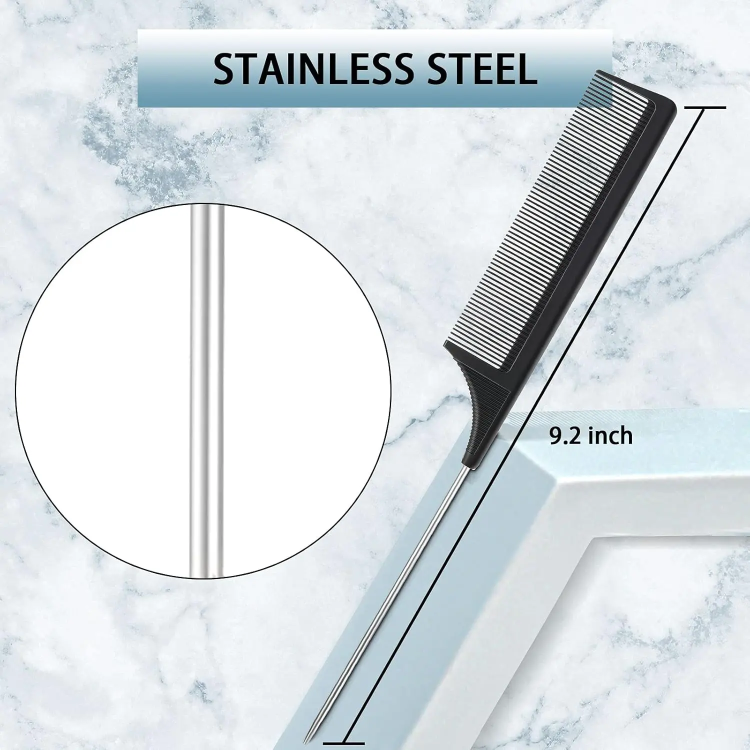 • Pin tail comb: Durable stainless steel handle for precise styling