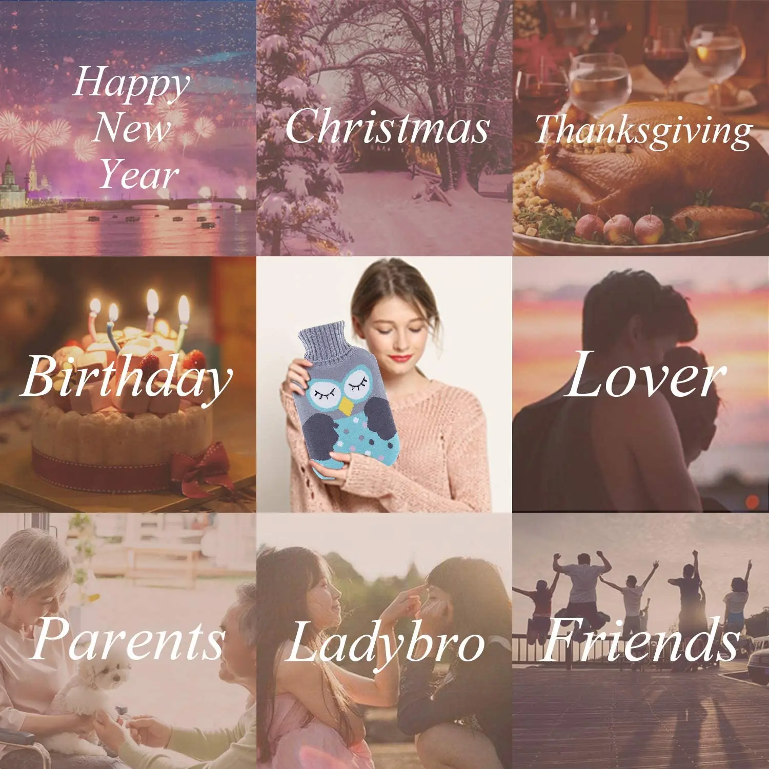 • Includes a soft and cute cartoon knitted cover for added comfort and heat retention.