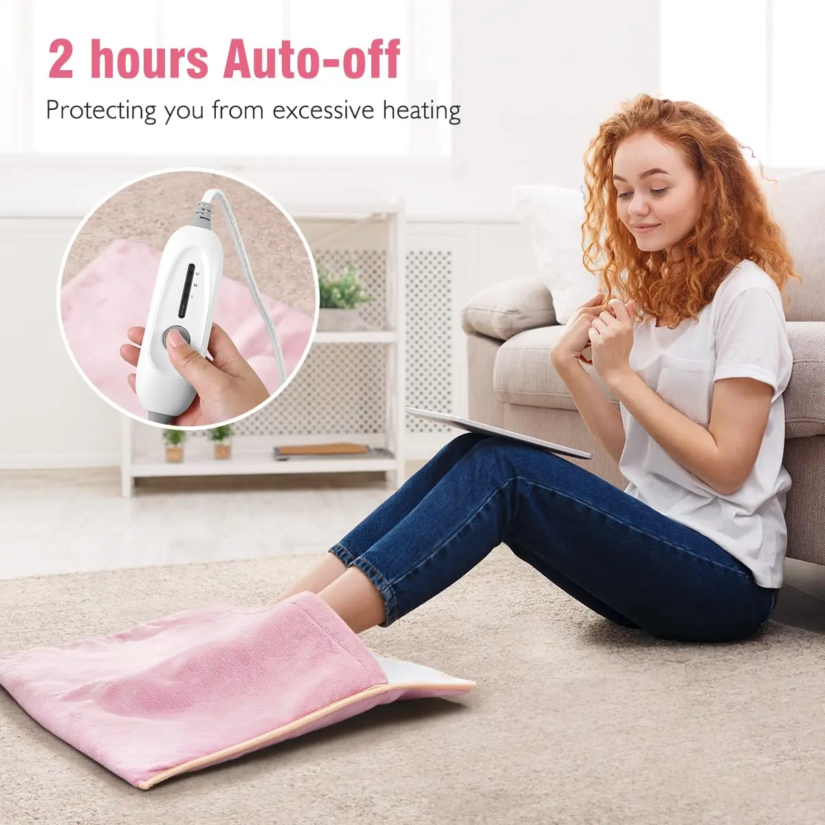 For your safety and peace of mind, the auto shut-off function turns off the heating pad after 2 hours, helping you save energy and preventing burns from overheating. Beyond just warming, this electric heating pad foot warmer offers fast and effective pain relief for aching muscles, alleviating tension, stiffness, headaches, and chronic pain.