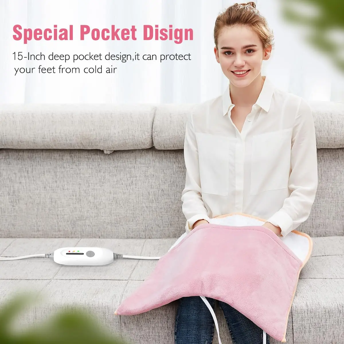 The special pocket design allows you to place your feet and legs inside the pad, offering a more convenient and targeted warming experience compared to wrapping it around your feet. Please note that for safety reasons, only the bottom part of the pad contains heating wires, but the plush cover ensures that heat is retained and distributed evenly.