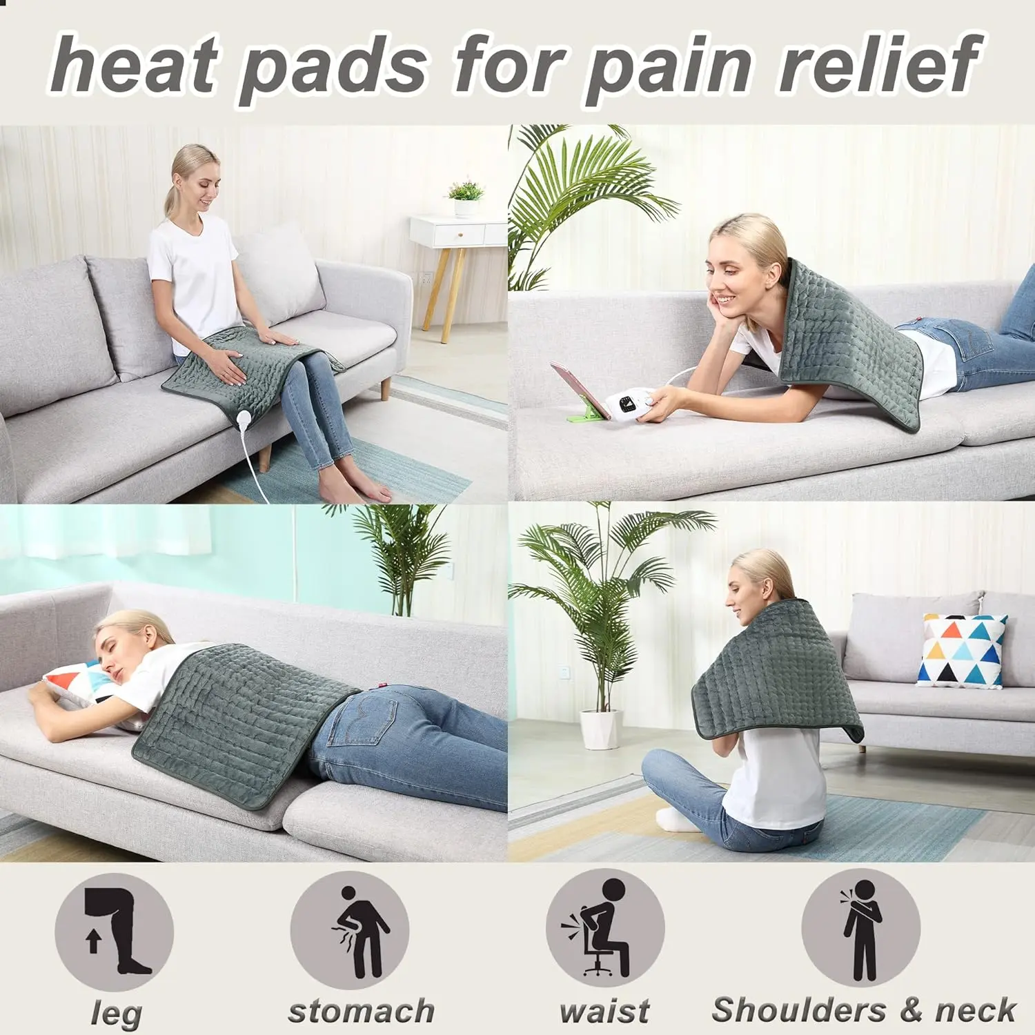 Experience soothing relief and ultimate comfort with our Electric Heating Pad, designed to alleviate pain and promote relaxation. This versatile heating pad is perfect for targeting various body parts, including your back, neck, abdomen, and legs. It effectively boosts blood circulation, reducing body fatigue and leaving you feeling refreshed and rejuvenated.