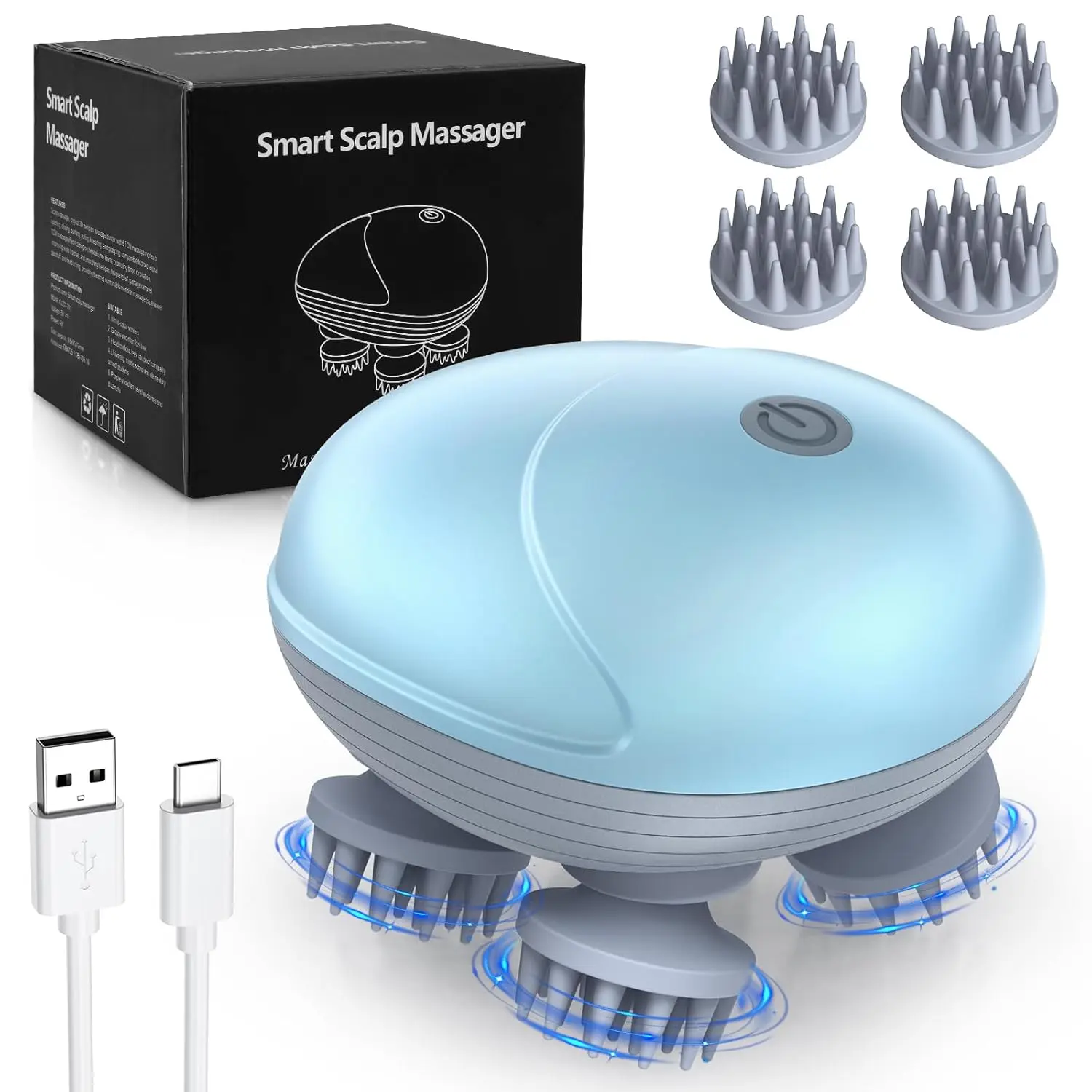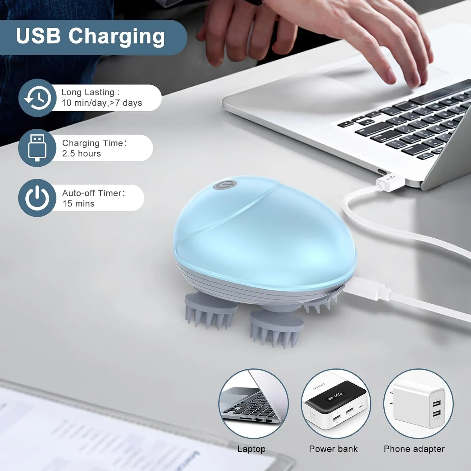 Soothe your pet with this Electric Pet Massager. Features 4 massage heads, 3 speeds, waterproof design, and USB charging. Promotes relaxation and bonding for cats and dogs.