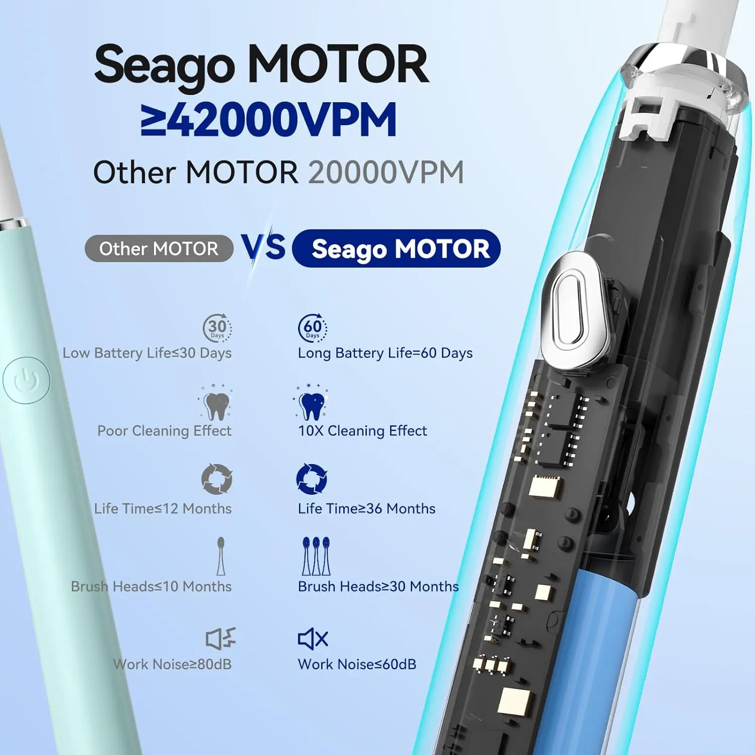 • 35,000 VPM: High-frequency vibrations for superior plaque removal.