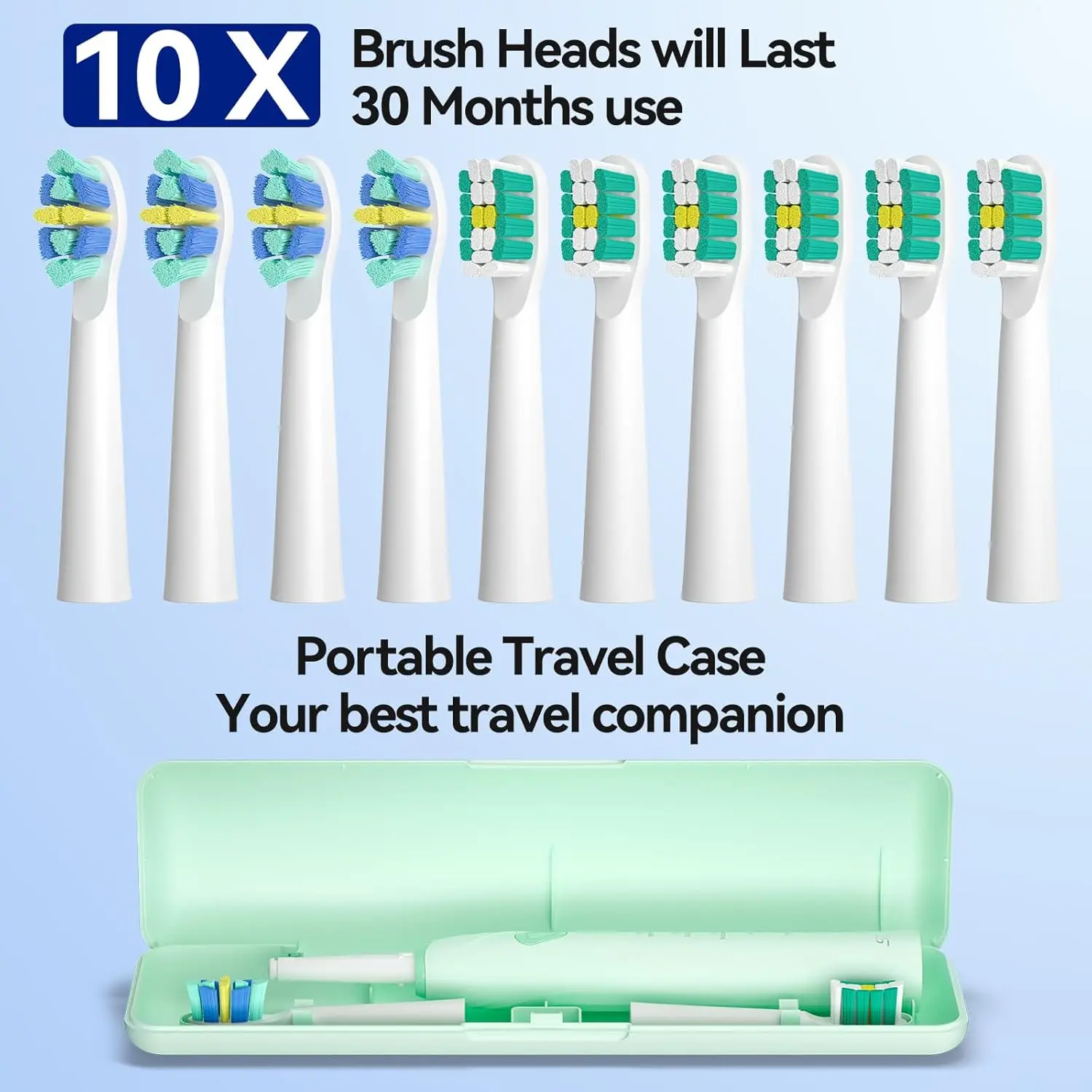 • 10 Replacement Brush Heads: Includes 6 W-shape and 4 3D high-density brush heads.