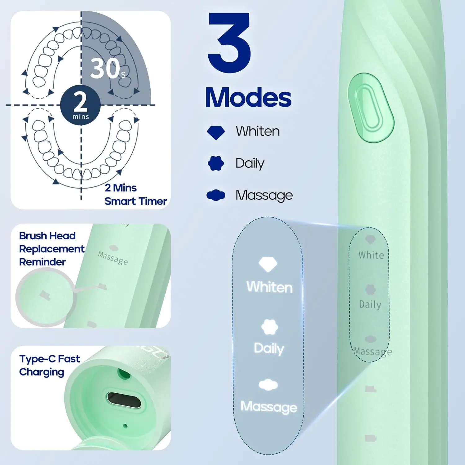 • Brush Head Replacement Reminder: Smart reminder to change brush heads every 3 months.