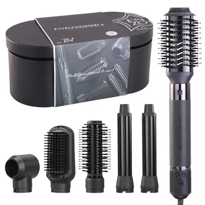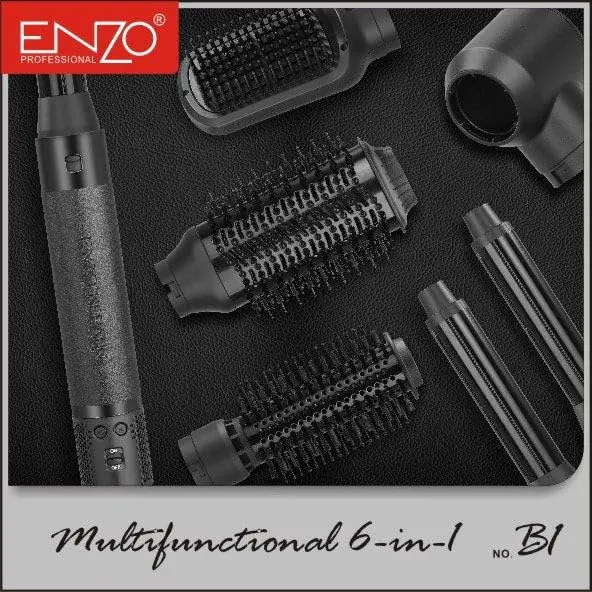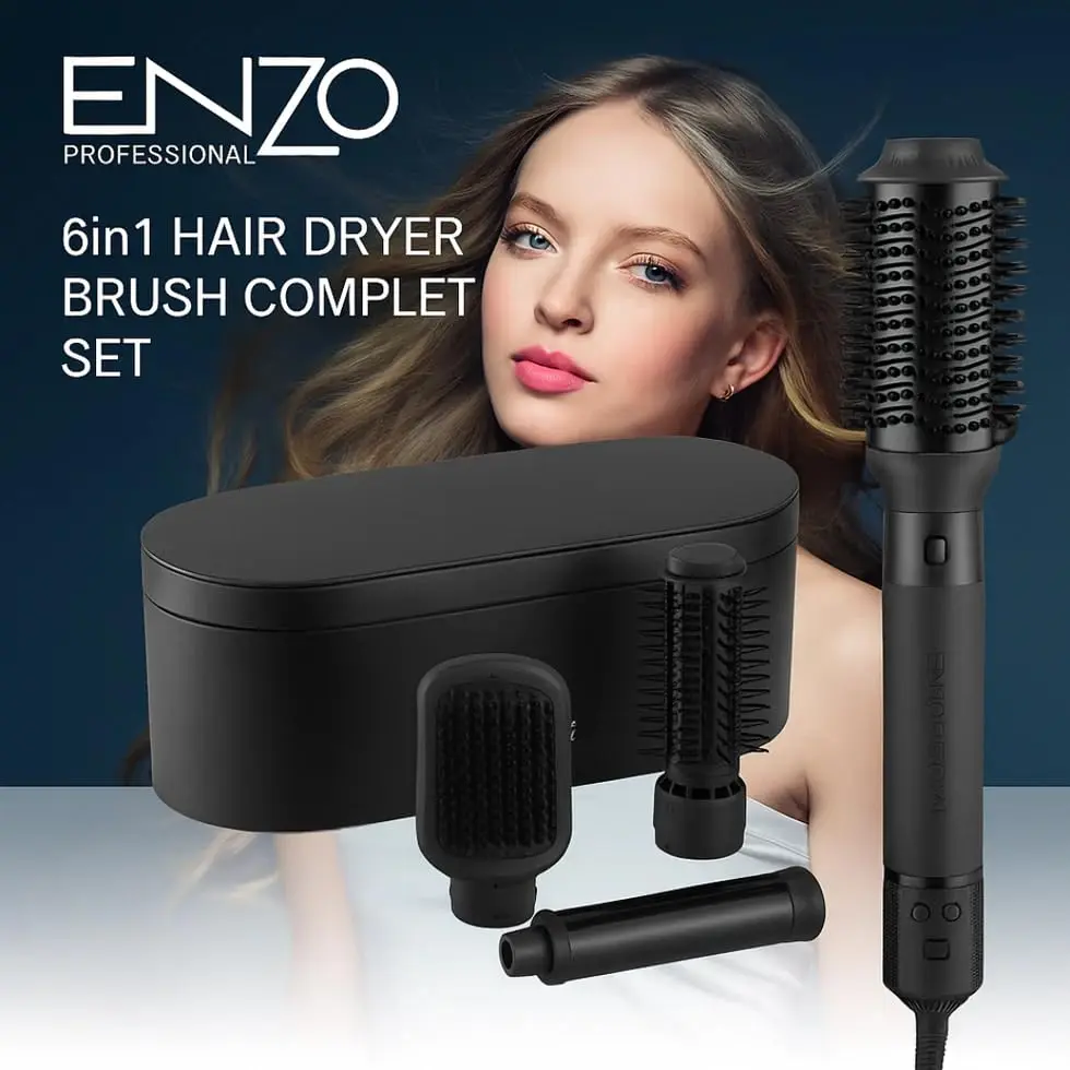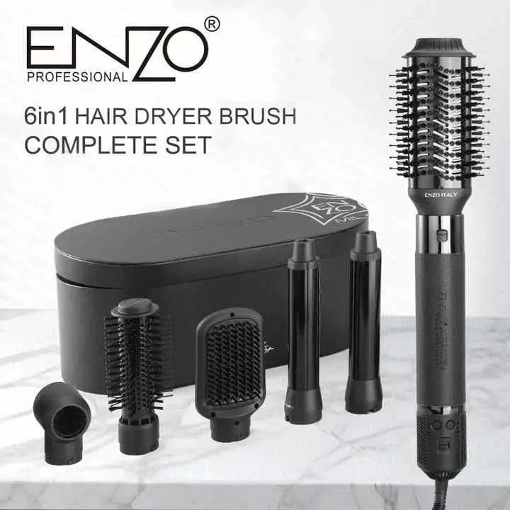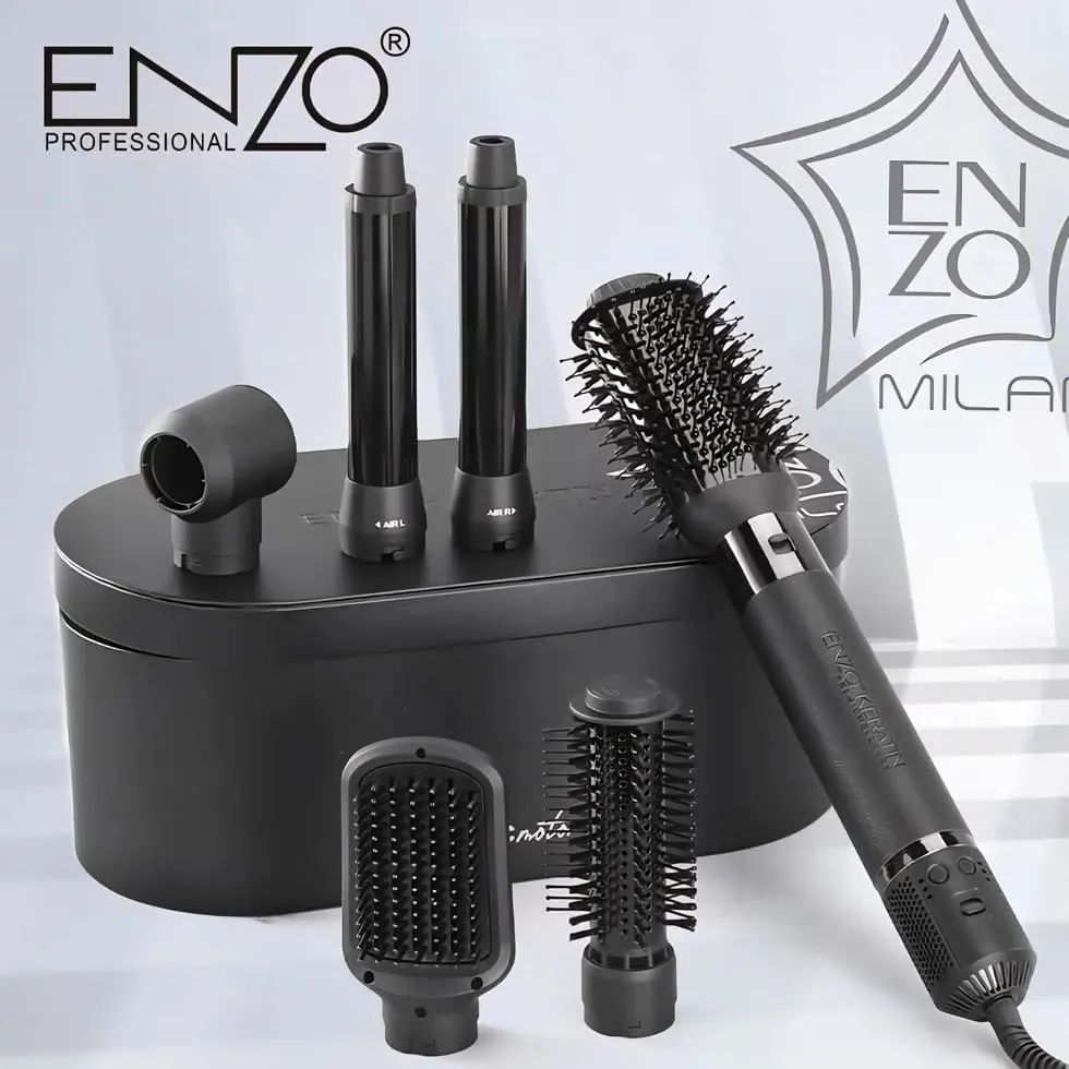 Unlock salon-quality styling at home with the ENZO 6-in-1 Hair Styler! This versatile tool combines the functionality of a hot air brush, hair dryer, straightener, curler, and volumizer, offering complete styling versatility for all hair types. Experience faster drying times and professional-grade results thanks to the advanced 130,000 RPM BLDC motor delivering 1500 watts of power. The luxurious rose gold finish adds a touch of elegance to your styling routine, while the multiple attachments and ionic technology ensure frizz-free, smooth, and voluminous results. Whether you’re aiming for sleek straight hair, bouncy curls, or maximum volume, this 6-in-1 styler has you covered. Its compact design makes it perfect for both home use and travel, allowing you to maintain your desired look wherever you go. Compatible with 220-240V power outlets, this is a must-have tool for achieving professional hairstyles effortlessly.