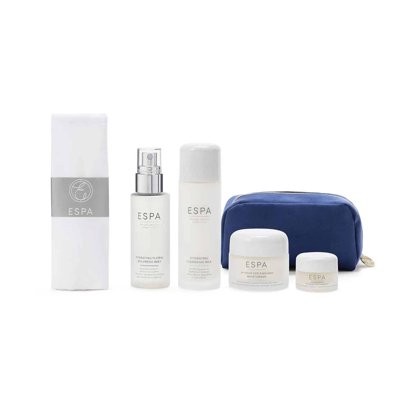 Combat winter dryness and unveil dewy, supple skin with the ESPA Hydration Gift Set. This complete 4-step hydration ritual is expertly formulated to revive and restore dry, dull skin, protecting it against harsh winter weather and leaving you with a replenished, healthy look. This set provides a full routine for silky-soft skin, including a gentle hydrating cleansing milk to effectively remove impurities without stripping the skin’s natural oils. Follow with the refreshing hydrating floral spa fresh mist to tone and prepare your skin for deeper hydration. The rich 24-hour replenishing moisturizer provides continuous comfort and protection throughout the day, while the intensive overnight hydration therapy mask works its magic as you sleep, deeply restoring and plumping the skin. This luxurious mask ensures you wake up to a revitalized complexion, ready to face the day. Featuring a blend of skin-loving naturals, including rose and chamomile to comfort and soothe irritation, this set also incorporates a specialized hydration complex for deep moisture penetration. Antioxidant vitamin E provides powerful protective results, shielding your skin from environmental aggressors. This nourishing collection is beautifully presented in a reusable cosmetic bag and complete with a professional Dual Action Cotton Cleansing Cloth, making it the ideal hydrating gift for anyone seeking to restore their skin’s natural radiance and softness. Experience the ultimate in hydration and achieve a healthy, glowing complexion with ESPA.
