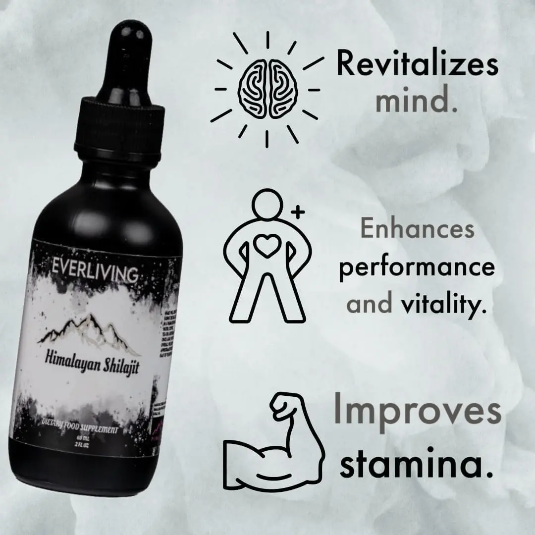Experience the ancient power of Shilajit with EverLiving Shilajit Liquid Drops! This potent adaptogen, sourced from pristine high-altitude mountain ranges, has been revered for centuries in Ayurvedic medicine for its remarkable revitalizing and rejuvenating properties. Our Shilajit is carefully extracted and purified to ensure the highest quality and potency, delivering a concentrated dose of beneficial fulvic acid, humic acid, and essential minerals directly to your body. With 60 servings per bottle, these convenient liquid drops are an easy and effective way to incorporate this incredible natural supplement into your daily routine. Boost your energy levels, enhance mental clarity, support a healthy immune system, and promote overall well-being with EverLiving Shilajit Liquid Drops. Unlike capsules or powders, our liquid form allows for faster absorption, maximizing the benefits of this ancient remedy. Unlock your full potential and experience the transformative power of Shilajit with EverLiving. It is your path towards balanced vitality and a vibrant, healthy life.