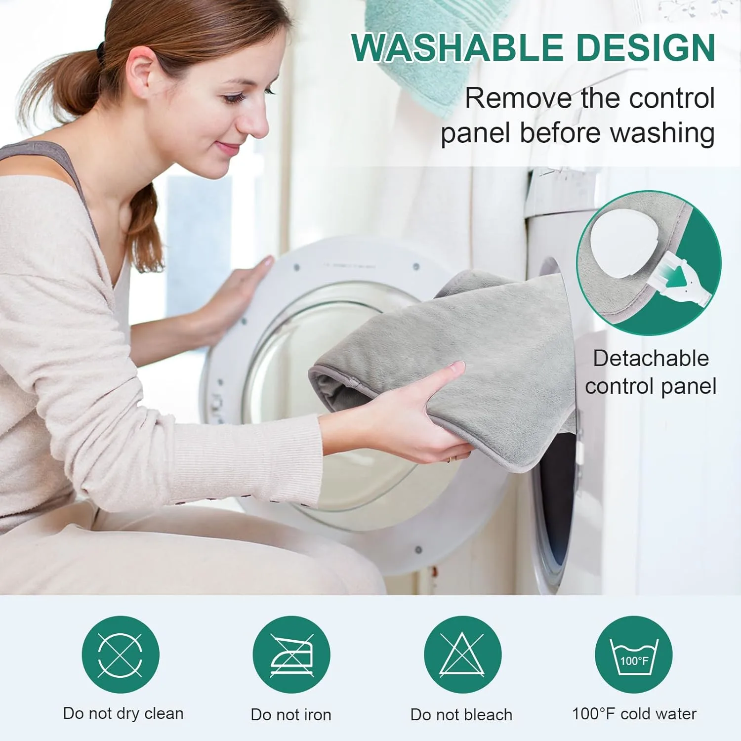 Experience soothing relief from back pain and muscle tension with our Extra Large Heating Pad. Measuring a generous 60x100cm, this heating pad provides full coverage for your neck, shoulders, back, and waist, conforming perfectly to your body’s contours. Whether you suffer from cramps, muscle soreness, or general tension, this pad delivers targeted heat therapy where you need it most. Enjoy customizable comfort with 6 temperature settings ranging from 40°C to 60°C (104°F to 149°F), allowing you to find the perfect heat level for abdominal pain relief, back pain management, shoulder and neck discomfort alleviation, or simply staying warm on a chilly day. The user-friendly remote control makes it easy to adjust the temperature to your preference. For your safety and convenience, this heating pad features a 4-level timer with automatic shut-off settings (30, 60, 90, or 120 minutes). This function prevents overheating and conserves energy, while also reducing your body’s reliance on continuous heat application. Made from high-quality, ultra-soft flannel fabric, this heating pad offers exceptional comfort and warmth. The plush material feels gentle against your skin. Cleaning is a breeze, simply unplug the pad and machine wash it for hassle-free maintenance. This neck and shoulder heating pad is easy to use and makes the ideal gift for anyone seeking warmth and pain relief during the winter months. Please consult the instruction manual before use. If you require assistance, our customer service team is ready to provide you with a better shopping experience. This extra-large heating pad provides comprehensive coverage and targeted relief for various areas, the adjustable temperature settings allow you to customize your comfort level to suit your specific needs, the automatic shut-off timer ensures safety and prevents overheating, and the machine-washable flannel material ensures effortless cleaning and maintenance.