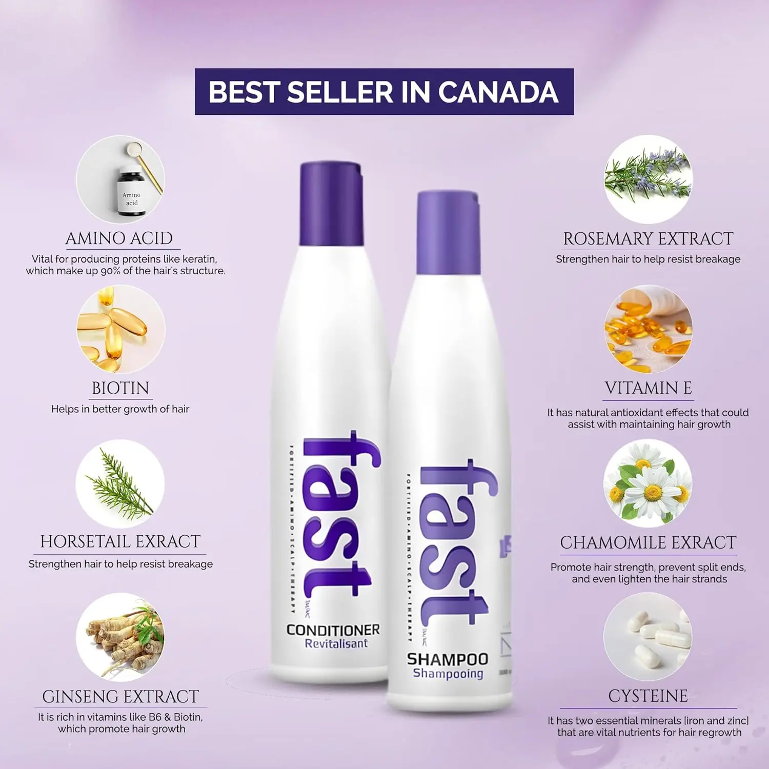 Unlock your hair’s full potential with F.A.S.T Fortified Amino Scalp Therapy Shampoo & Conditioner! This dynamic duo is designed to leave your hair with a rich, luxurious texture and appearance you’ll love. Our unique formulas are power-packed with essential nutrients, amino acids, and proteins, all working synergistically to promote longer, stronger, and healthier hair growth. Whether you’re struggling with slow growth, thinning hair, or simply want to maximize your hair’s natural potential, F.A.S.T is your answer. Suitable for all hair types, including chemically treated hair, this shampoo and conditioner gently cleanses and nourishes without stripping away essential oils or causing damage. Experience the difference of a clinically proven formula that stimulates hair growth, helping you achieve the long, luscious locks you’ve always dreamed of. F.A.S.T works by providing your scalp with the vital nutrients it needs to support healthy hair follicles, creating an optimal environment for growth. Don’t wait any longer to unlock your hair’s true potential – try F.A.S.T today and see the difference! We’re confident you’ll love the results.