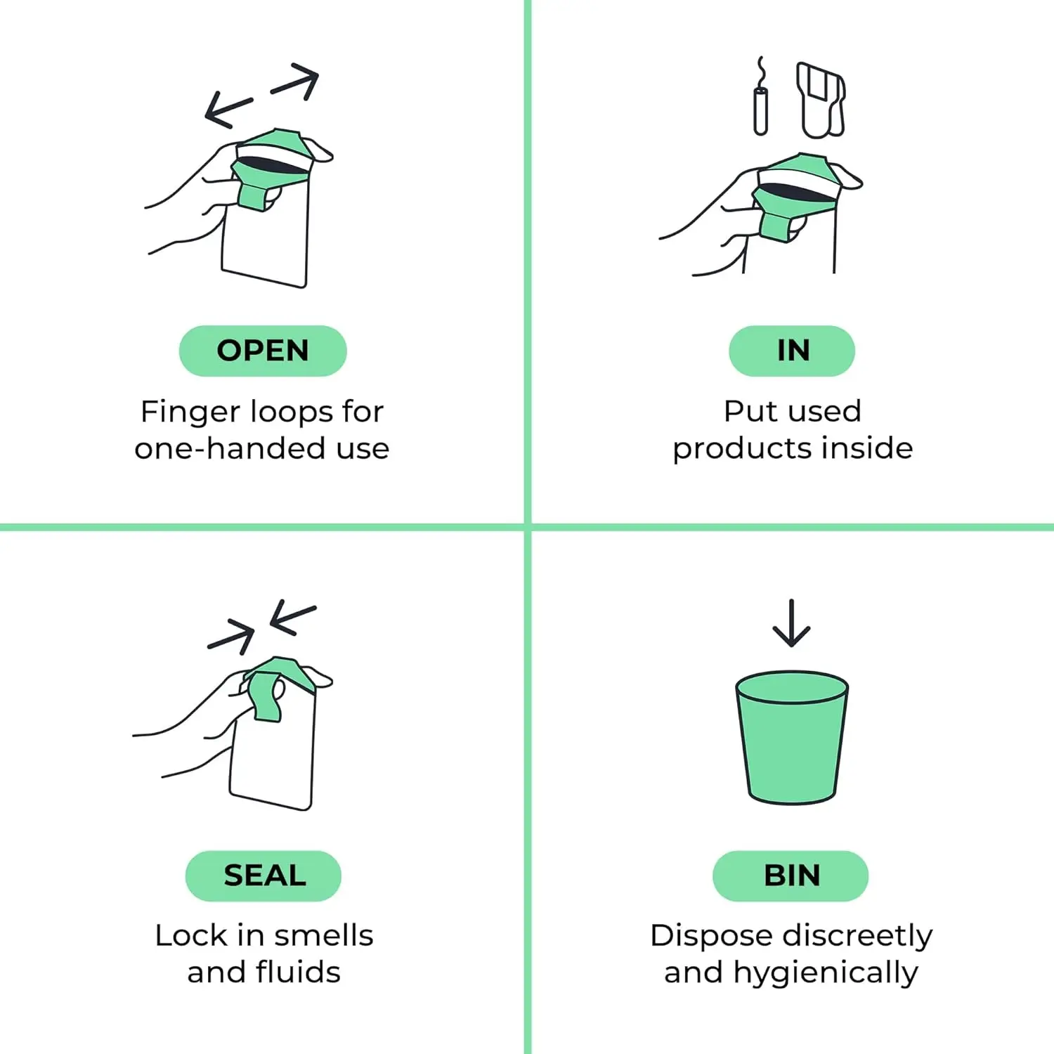 • Opaque and odour-trapping design for discreet disposal.