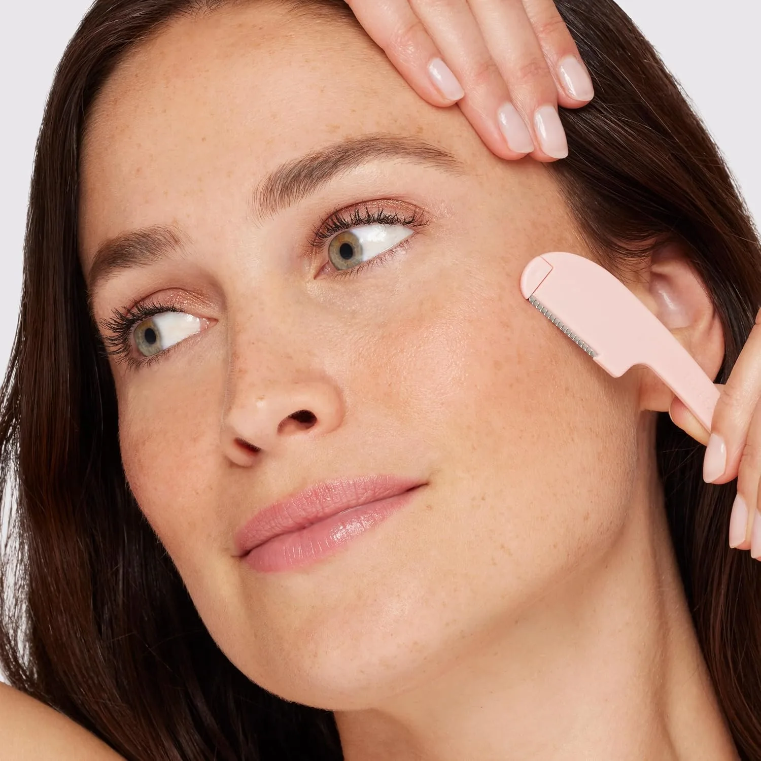Using our facial razors is simple. Begin with clean and moisturized skin, or use while washing your face with face wash still on. Remove the cap from the tool, hold the razor at a slight angle, and use short, feathery strokes downward with light pressure in areas where you want to remove excess hair. After use, rinse your face and apply a moisturizer or serum to prevent dryness. To clean the razor, rinse with warm water or an alcohol wipe. Allow it to dry completely before replacing the cap and storing in a dry place. Remember to handle the razor with care as the blade is sharp. Proper tool care, including cleaning before and after each use and storing with the cap on in a dry place, will help prevent build-up and extend the life of your razors.