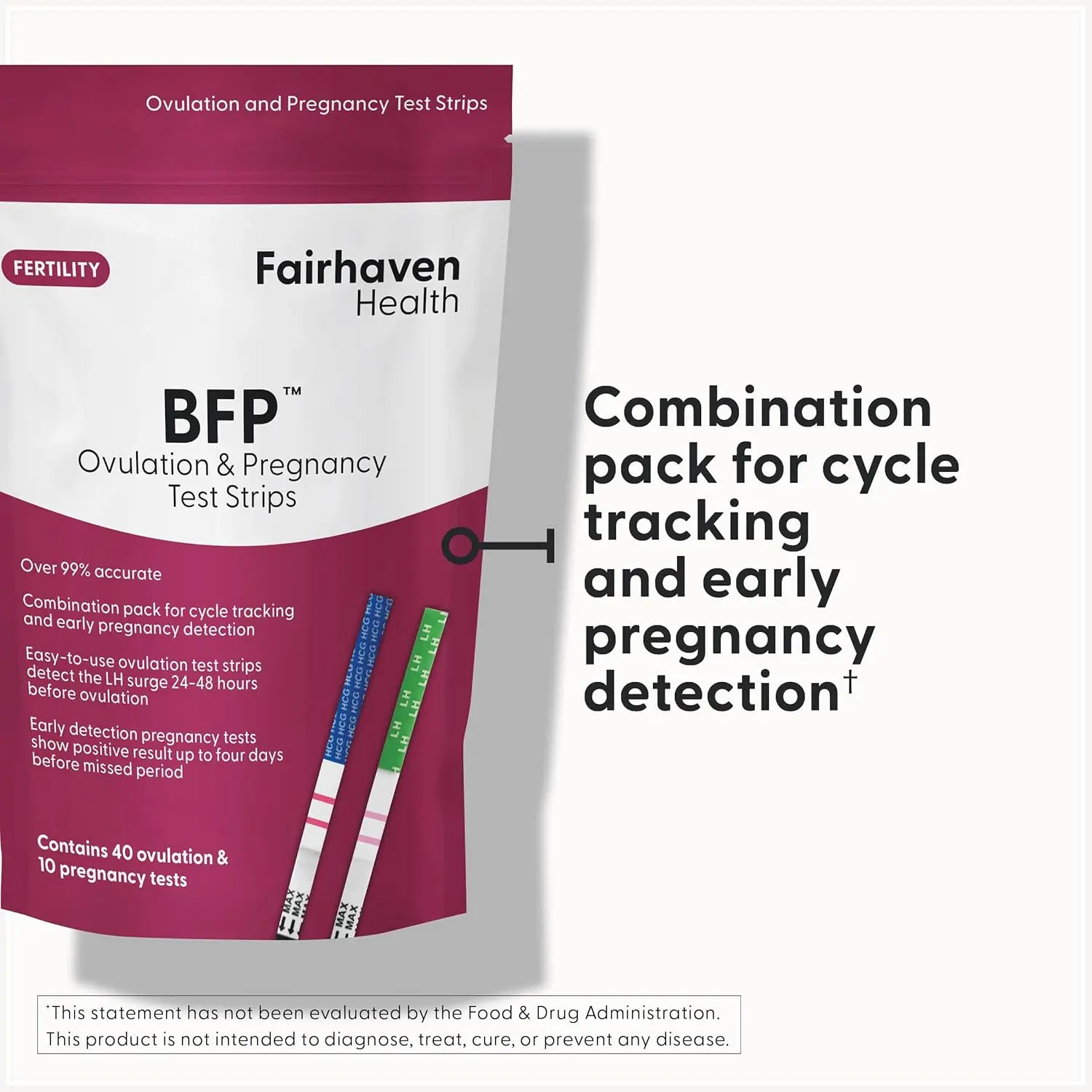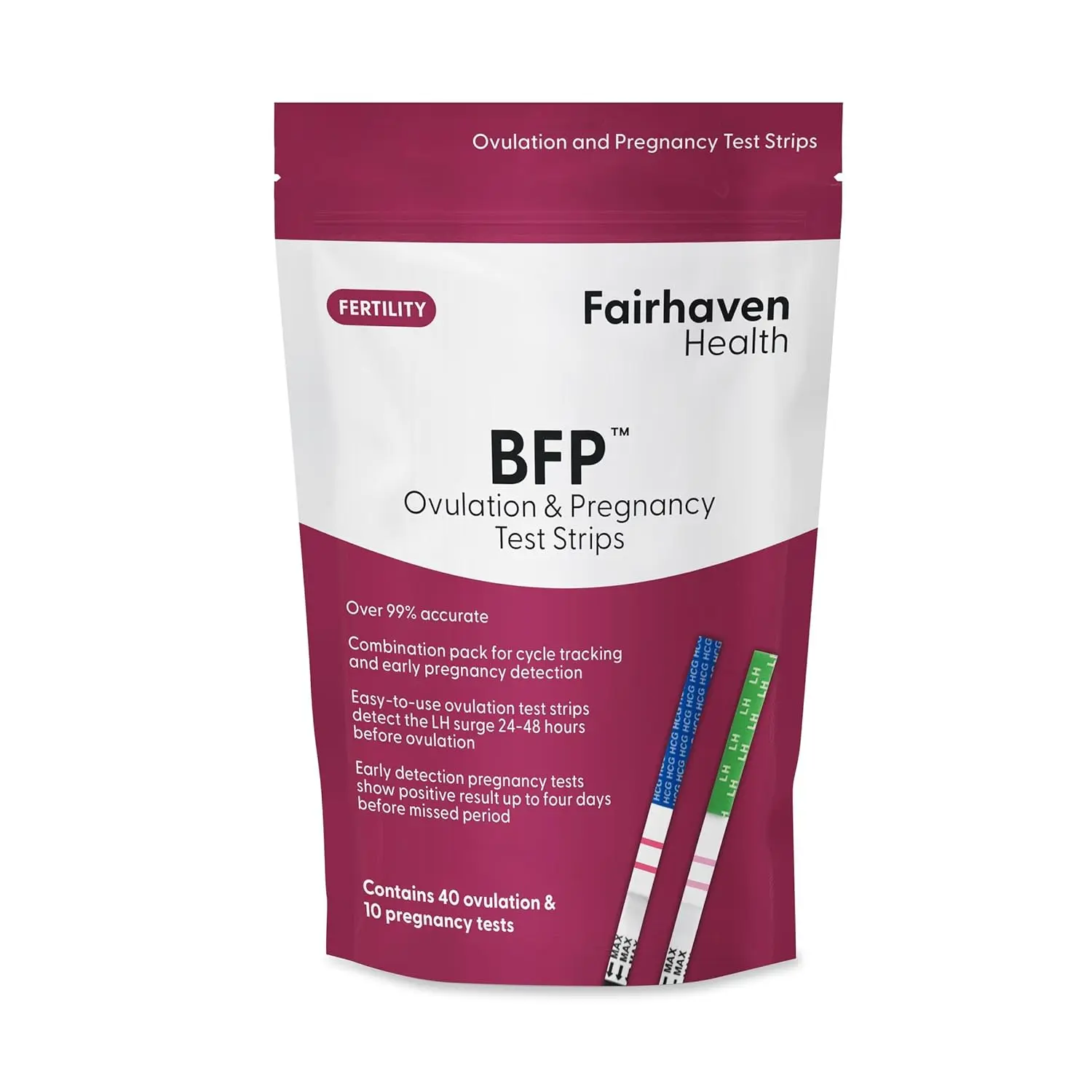 Accurately track your ovulation cycle and early pregnancy with Fairhaven Health Ovulation & Pregnancy Test Strips. Designed for women who are trying to conceive, these strips offer a reliable and cost-effective way to monitor your fertility journey. Our ovulation tests detect the Luteinizing Hormone (LH) surge, which signals that ovulation is about to occur, allowing you to pinpoint your most fertile days. The pregnancy tests detect the presence of hCG in your urine, providing early and accurate detection of pregnancy. With Fairhaven Health test strips, you can gain valuable insights into your reproductive health and increase your chances of conception. These strips are easy to use and provide rapid results in the privacy of your own home. Take control of your family planning with the confidence and accuracy you deserve. Knowing when you’re most fertile and confirming pregnancy early can significantly reduce stress and improve your chances of success. We provide a reliable solution for couples navigating the complexities of conception. Join thousands of women who have trusted Fairhaven Health for their fertility needs and start your journey towards parenthood today. Get the peace of mind that comes with knowing you are accurately tracking your cycles and early signs of pregnancy. With high sensitivity, our tests ensure you don’t miss crucial signals. Whether you are just starting to try or have been trying for a while, Fairhaven Health test strips are a valuable tool in your family-building journey.