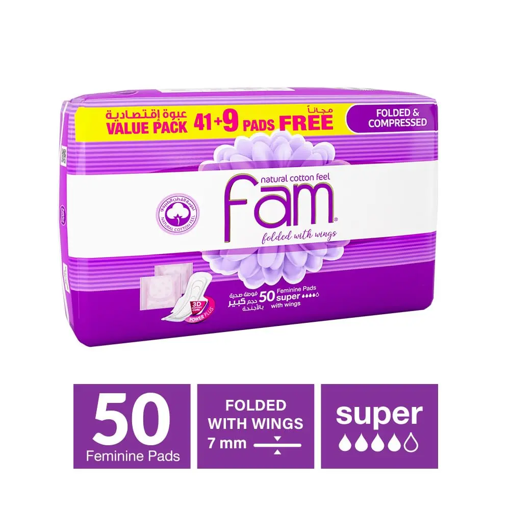 Experience ultimate comfort and protection with Fam Natural Cotton Feel Maxi Pads. Designed for superior absorbency and all-day confidence, these pads feature a soft, natural cotton feel top sheet that gently protects your skin from irritation, ensuring a comfortable experience even during extended wear. The innovative, extra-absorbent pad instantly draws in liquid and locks it away, preventing leaks and keeping you feeling fresh and dry throughout the day. With their soft and flexible design, these maxi pads conform to your body for a secure and discreet fit. Perfect for managing your menstrual flow or providing reliable protection against incontinence, Fam Natural Cotton Feel Maxi Pads are a must-have for every woman’s hygiene needs. Each pad is crafted with your comfort in mind, offering a blend of performance and gentle care. Choose Fam for the peace of mind you deserve, knowing you’re protected by a trusted brand committed to quality and innovation. These pads offer superior absorbency and all-day protection. Their soft cottony cover keeps your skin free from rash, and the flexible pad fits your body shape comfortably so you can move about your day worry-free. Get that peace of mind today.