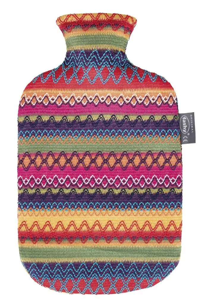Experience cozy comfort with the Fashy Hot Water Bottle 2.0L in the stylish Peru Design! This hot water bottle is designed for safe and effective warmth, providing soothing relief for aches, pains, and chilly nights. Crafted with a durable, integrally molded thermoplastic material, this hot water bottle boasts a jointless neck, significantly reducing the risk of leaks and ensuring long-lasting performance. Say goodbye to worrying about messy spills and hello to uninterrupted relaxation. The included cover is made from a soft and comfortable blend of 95% polyester and 5% elastane. The removable cover adds a touch of luxury and is easy to clean, keeping your hot water bottle fresh and hygienic. The Peru Design features a vibrant pattern, adding a touch of style to your self-care routine. The thermoplastic material is not only durable but also odourless and recyclable, making it an environmentally conscious choice. Whether you’re seeking warmth on a cold evening, soothing muscle tension, or simply looking for a comforting companion, the Fashy Hot Water Bottle is the perfect solution. Enjoy the peace of mind that comes with a high-quality, leak-proof design and the added convenience of a removable, washable cover. Embrace warmth and relaxation with this essential home comfort item. Its generous 2.0L capacity ensures long-lasting warmth, while its compact design makes it easy to store and transport. This hot water bottle is an excellent choice for all ages. Bring the warmth home today!