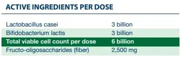 • Each sachet contains 2,500mg FOS and 6 billion CFU probiotics.