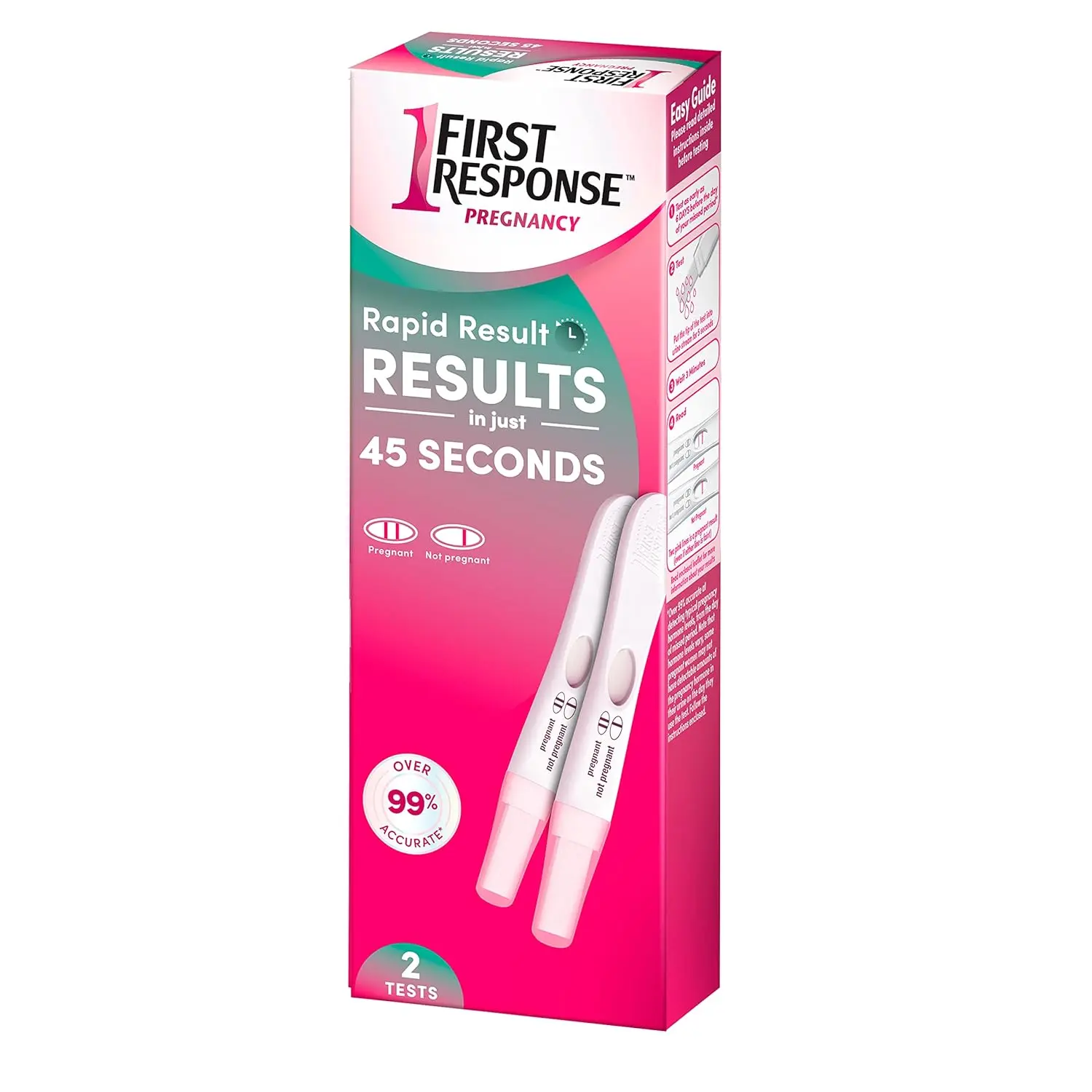Are you anxious to know if you’re pregnant? Get rapid and reliable results with the First Response Rapid Result Pregnancy Test. This at-home test provides over 99% accuracy, giving you peace of mind during this important time. The innovative dual-end brush ensures simple and precise application, making testing easy and stress-free. Receive your results in just one minute on the day of your missed period, or any day thereafter, allowing you to know sooner. First Response empowers you with the information you need to make informed decisions about your health and future. This convenient 2-pack provides extra reassurance or the ability to test again later. Don’t wait – discover the answer you’re looking for quickly and confidently with First Response Rapid Result Pregnancy Test. The easy to read results leave no guessing. Testing early can give you the answers you need and help with early planning.