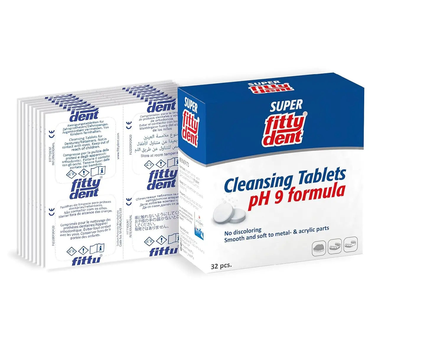 Keep your dentures and orthodontic appliances sparkling clean and fresh with Fitty Dent Cleansing Tablets! Our powerful, no-discoloring anti-plaque formula effectively removes stubborn stains, food particles, and plaque buildup, leaving your dentures and braces feeling clean and comfortable. These tablets are specially designed to gently yet thoroughly cleanse without causing any damage or discoloration to your valuable dental appliances. Regular use of Fitty Dent Cleansing Tablets helps maintain optimal oral hygiene, prevents bad breath, and prolongs the life of your dentures and braces. Our easy-to-use tablets dissolve quickly in water, creating a potent cleaning solution that reaches even the most hard-to-reach areas. Experience the confidence of a brighter, healthier smile with Fitty Dent Cleansing Tablets – the perfect solution for a truly clean and fresh feeling! Say goodbye to stains and hello to a confident smile. Use daily for best results and maintain the cleanliness that you deserve.