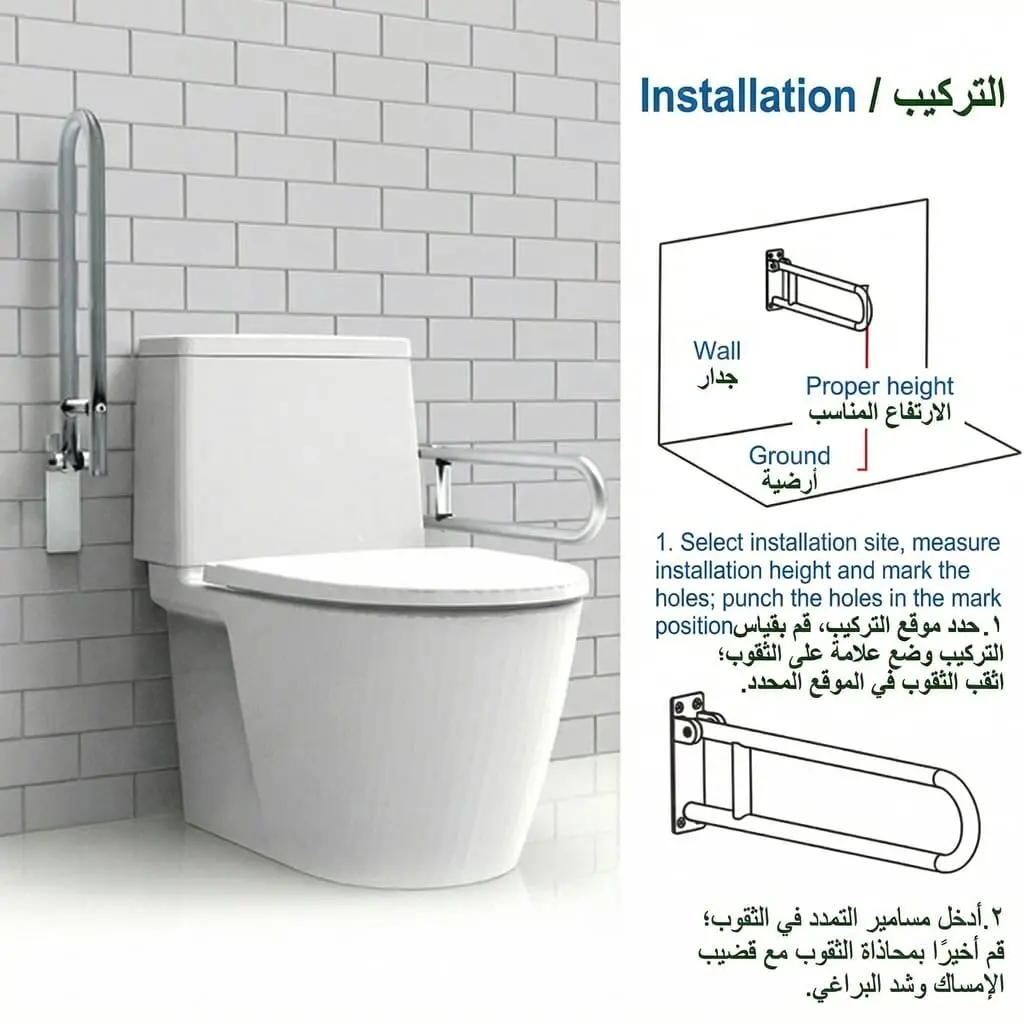 Enhance bathroom safety and independence with this innovative flip-up grab bar. Designed for convenience and durability, this grab bar provides reliable support for individuals with limited mobility, including the elderly, disabled, pregnant women, and those recovering from surgery. Its unique 90° flip-up design allows it to be easily folded away against the wall when not in use, maximizing space in your bathroom or toilet. Crafted from high-quality aluminum alloy, this grab bar offers exceptional strength, wear resistance, and corrosion resistance, ensuring long-lasting performance. The 25.4mm diameter and 2.0mm thickness provide a comfortable and secure grip, giving you the confidence you need in the bathroom. Installation is simple and can be done in a variety of locations, including bathrooms, showers, toilets, bathtubs, and even shopping arcades. This grab bar helps users stand up and sit down with ease, reducing the risk of slips and falls. Provides essential support in the bathroom, ensuring greater independence and peace of mind. Perfect for home use, hospitals, nursing homes, and assisted living facilities. The ergonomic design makes it easy to grip and use for individuals of all abilities. It’s more than just a grab bar; it’s an investment in safety and well-being.