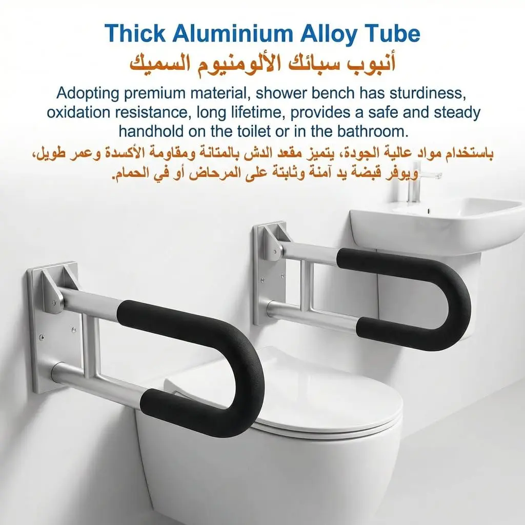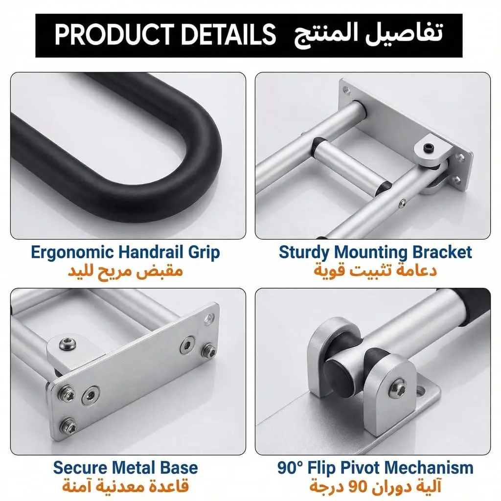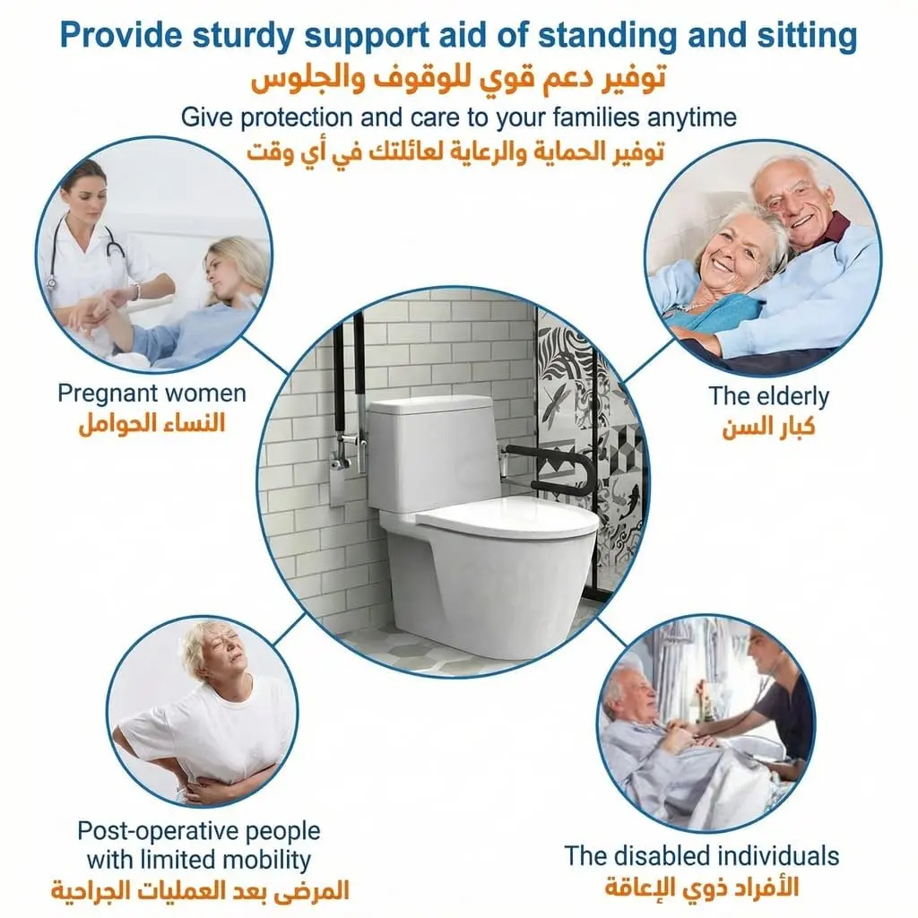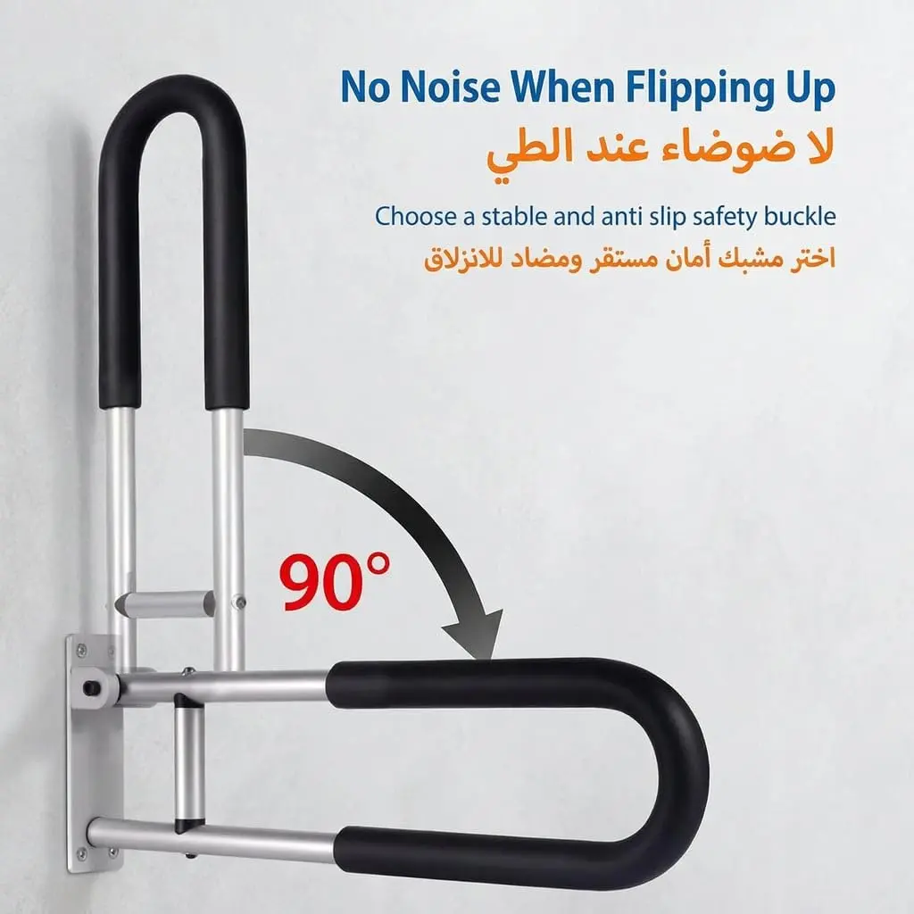 Flip-Up Toilet Grab Bar offers superior support and a space-saving design. Ideal for enhancing bathroom safety for elderly, disabled individuals, and pregnant women. Easy to install!