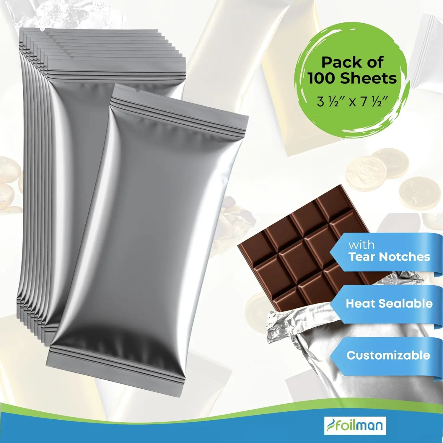 Elevate your homemade chocolate creations with Foilman Chocolate Bar Wrappers! This 100-pack of rectangular foil wrappers is perfect for wrapping and presenting your delicious chocolate bars. Whether you’re a professional chocolatier or a passionate hobbyist, these wrappers will add a touch of elegance and professionalism to your creations. Protect your chocolate from moisture and air, ensuring they stay fresh and delicious for longer. The rectangular shape makes them ideal for standard-sized chocolate bars, providing a snug and secure fit. Impress your friends, family, or customers with beautifully wrapped chocolates that look as good as they taste. These wrappers are easy to use and provide a clean, professional finish. Great for parties, gifts, or selling your homemade treats. Upgrade your chocolate-making experience with Foilman Chocolate Bar Wrappers and give your creations the presentation they deserve. With 100 wrappers in each pack, you’ll have plenty to wrap all your chocolate bars. The high-quality foil material is durable and resistant to tearing, ensuring your chocolates remain protected during storage and transport. Make your chocolate bars stand out with these stylish and functional wrappers. They are also ideal for wrapping other treats, such as homemade candies or fudge. Let Foilman Chocolate Bar Wrappers be the finishing touch to your delectable creations, adding a touch of sophistication and ensuring they are ready to be enjoyed.
