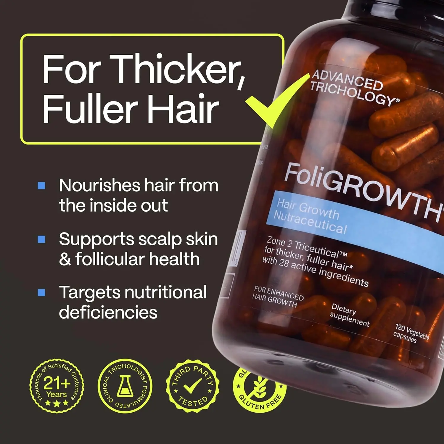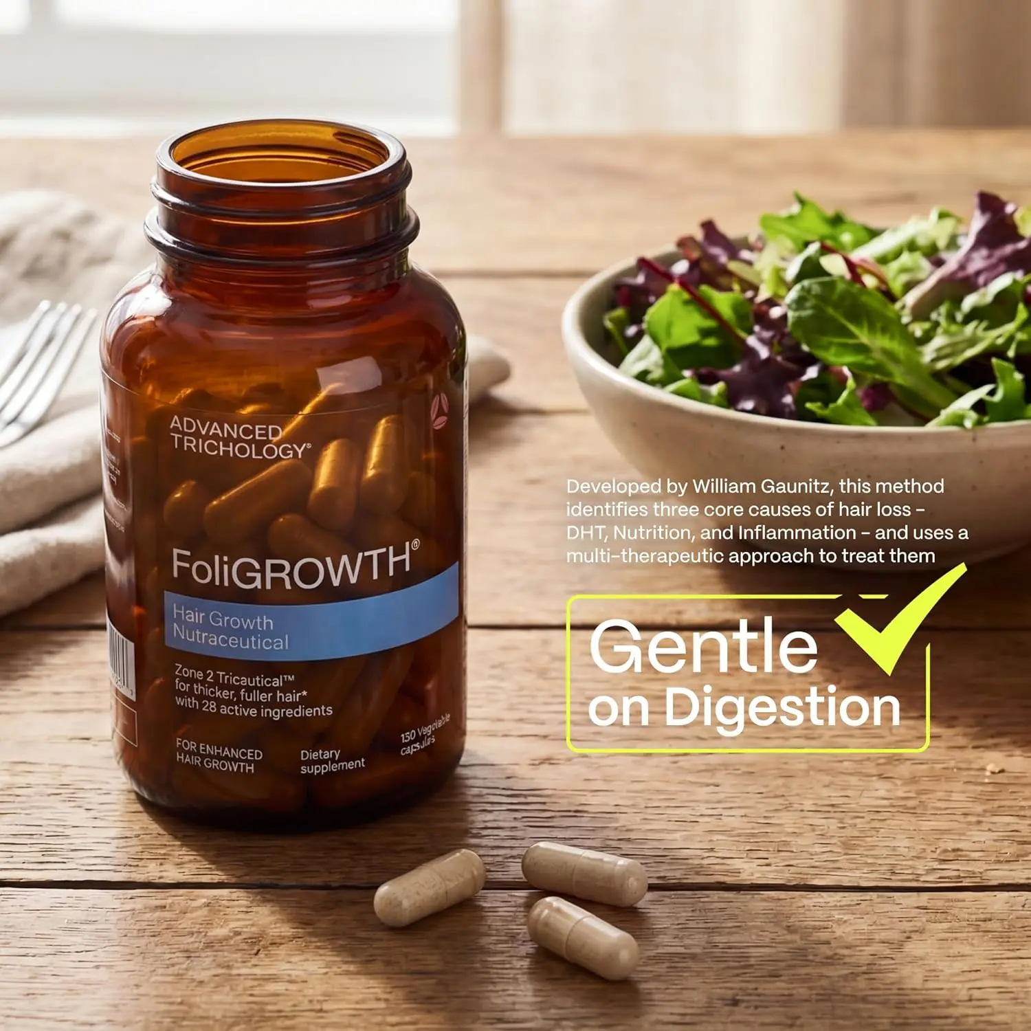 Struggling with thinning hair or slow growth? FoliGROWTH Hair Growth Supplement is meticulously crafted to help you achieve the thick, healthy, and vibrant hair you’ve always desired. Our unique formula is designed with the prevailing industry standards using carefully selected ingredients that work synergistically to nourish your hair follicles from within. This powerful supplement is packed with a host of goodness, including essential vitamins, minerals, and botanical extracts known to promote hair strength, growth, and overall scalp health. We understand the importance of quality and hygiene, which is why FoliGROWTH is packaged in a hygienic environment to ensure its purity and effectiveness. Feel confident knowing that each capsule is formulated with care and commitment to providing you with the best possible results. Say goodbye to dull, lifeless hair and hello to a fuller, more confident you with FoliGROWTH Hair Growth Supplement. Experience the difference of a supplement that is designed for optimal hair health and packaged with your well-being in mind.