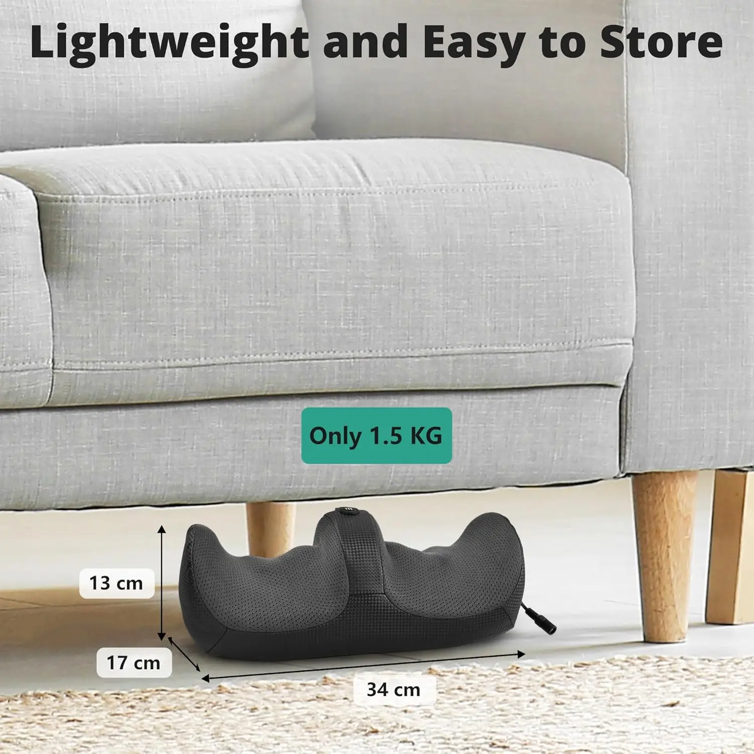 Designed for convenience and portability, the Medcursor foot massager weighs only 1.5kg, making it easy to move and store. Its compact size allows it to fit discreetly under desks or sofas, so you can enjoy a relaxing foot massage anytime, anywhere. The simple one-touch controls enable you to effortlessly adjust the intensity and heat settings in seconds, without the need for complicated settings or confusing instructions.
