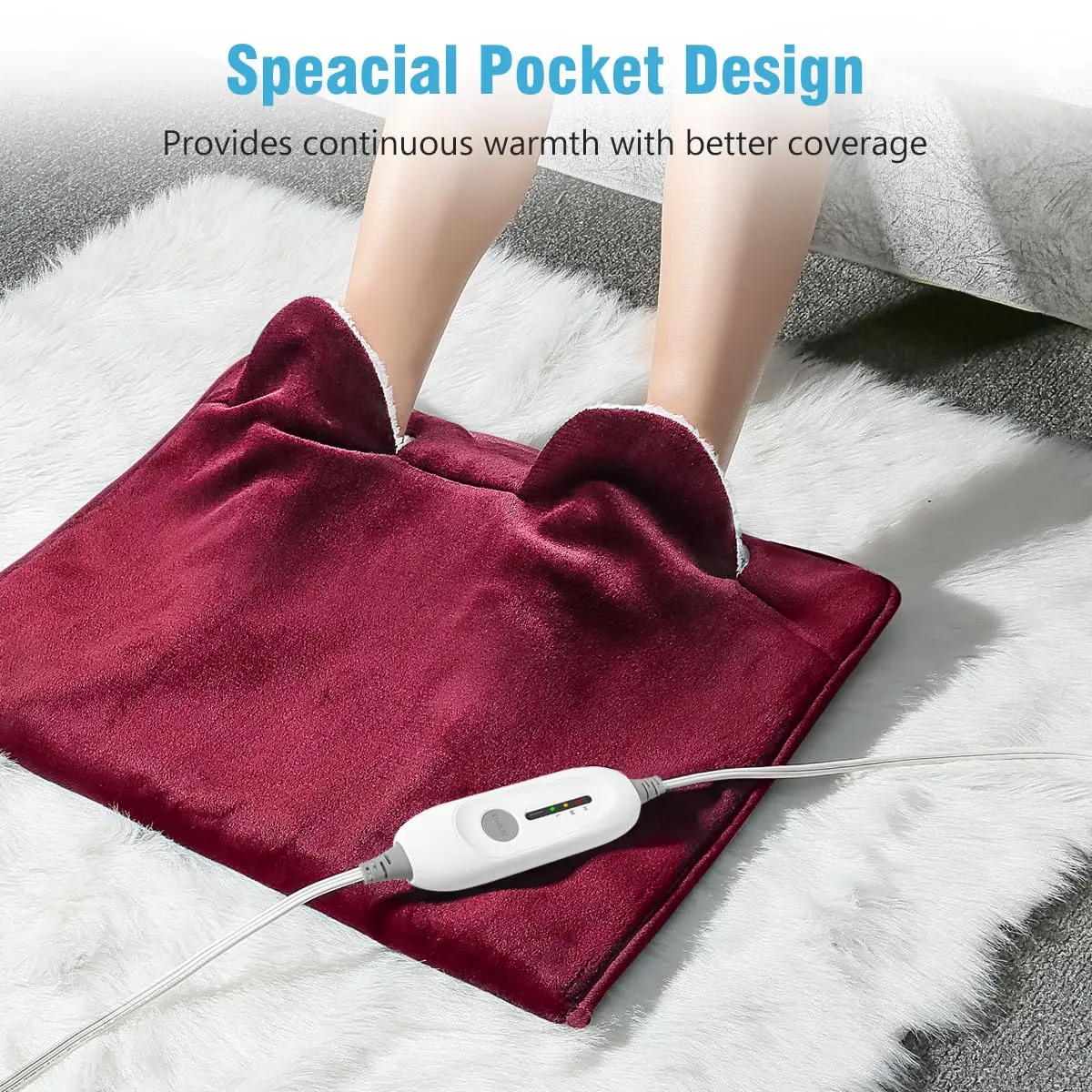 Indulge in luxurious comfort with the ultra-plush flannel construction. Both sides of the warmer are made from this exceptionally durable and warm material. The inside features a soft plush lining that adds an extra layer of comfort against your skin. For safety reasons, heating wires are only located on the bottom, but the thick flannel cover effectively traps heat, ensuring your feet stay warm and cozy.
