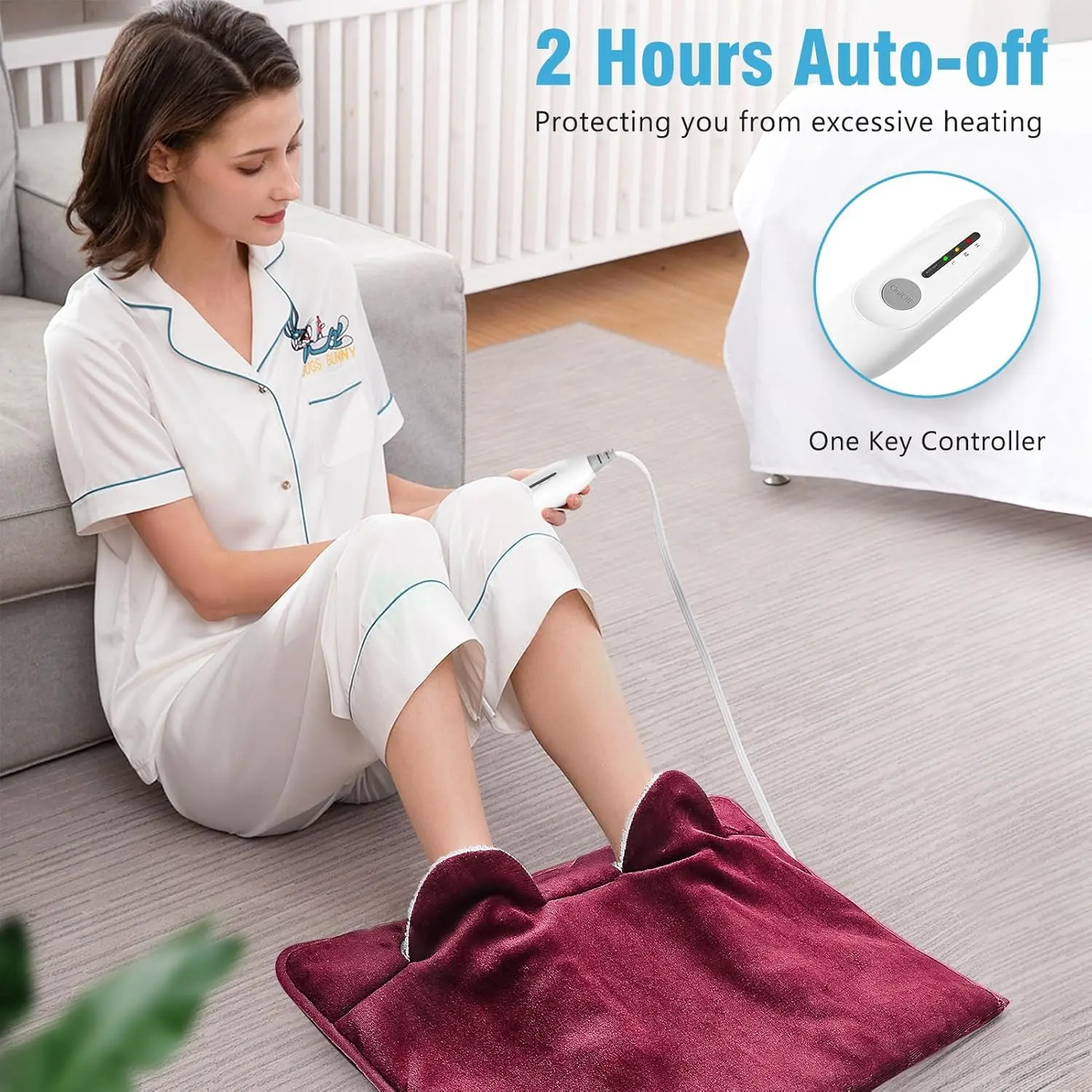 Safety and ease of use are paramount. The controller features a simple one-key operation, allowing you to conveniently cycle through three temperature settings to find your perfect level of comfort. For added peace of mind, the 2-hour auto-off function prevents overheating and saves energy. Rest assured, this product has ETL certification (originated with Intertek), meeting stringent safety requirements.